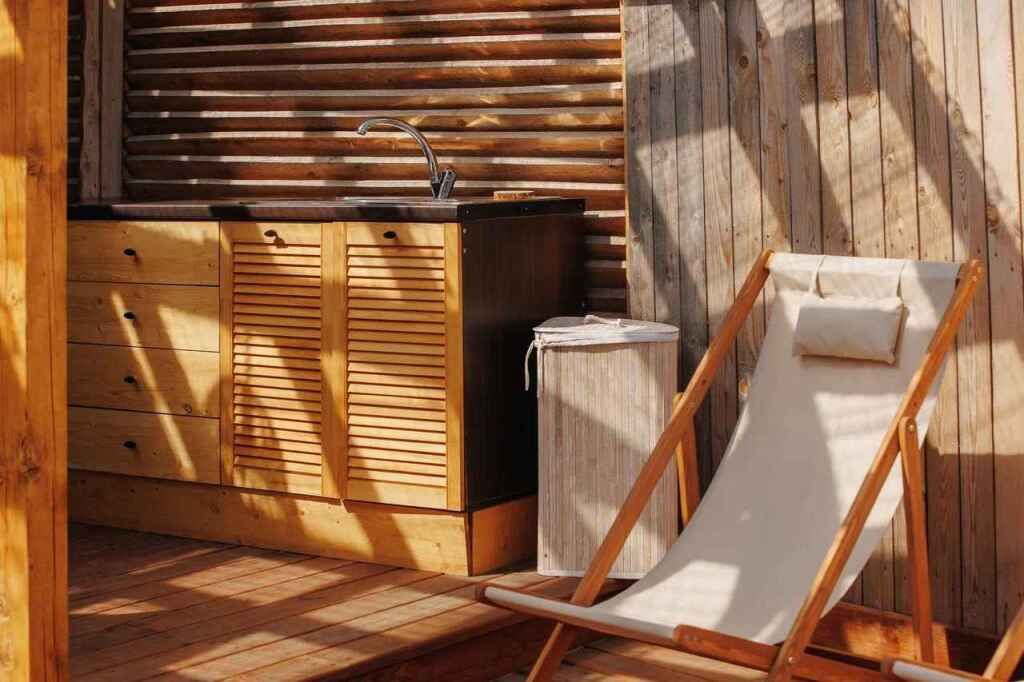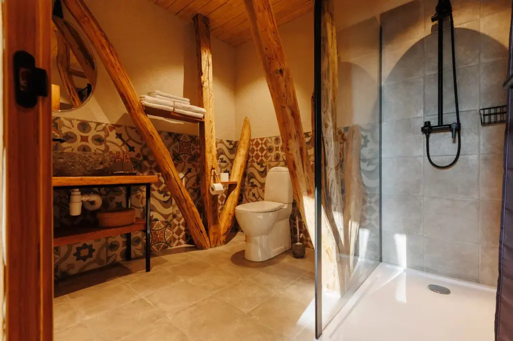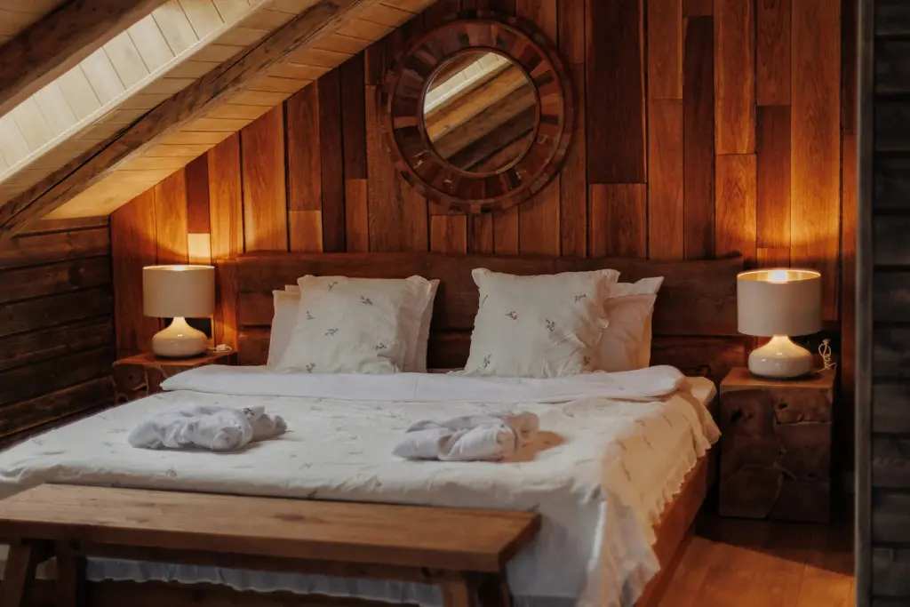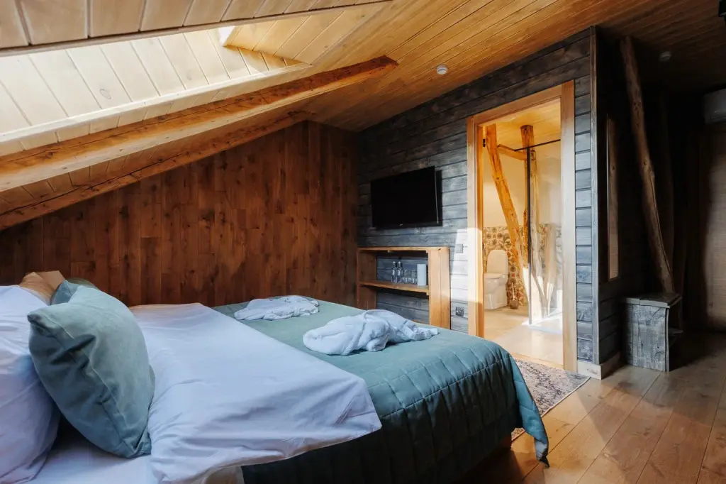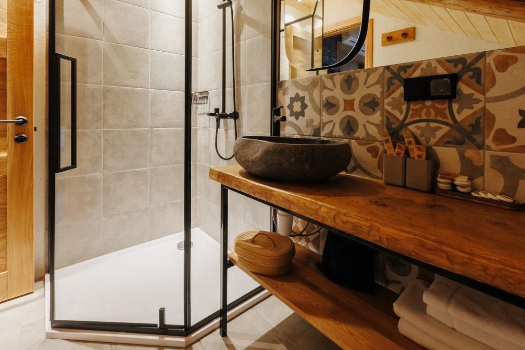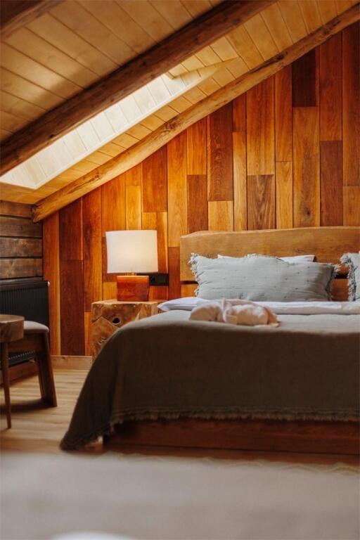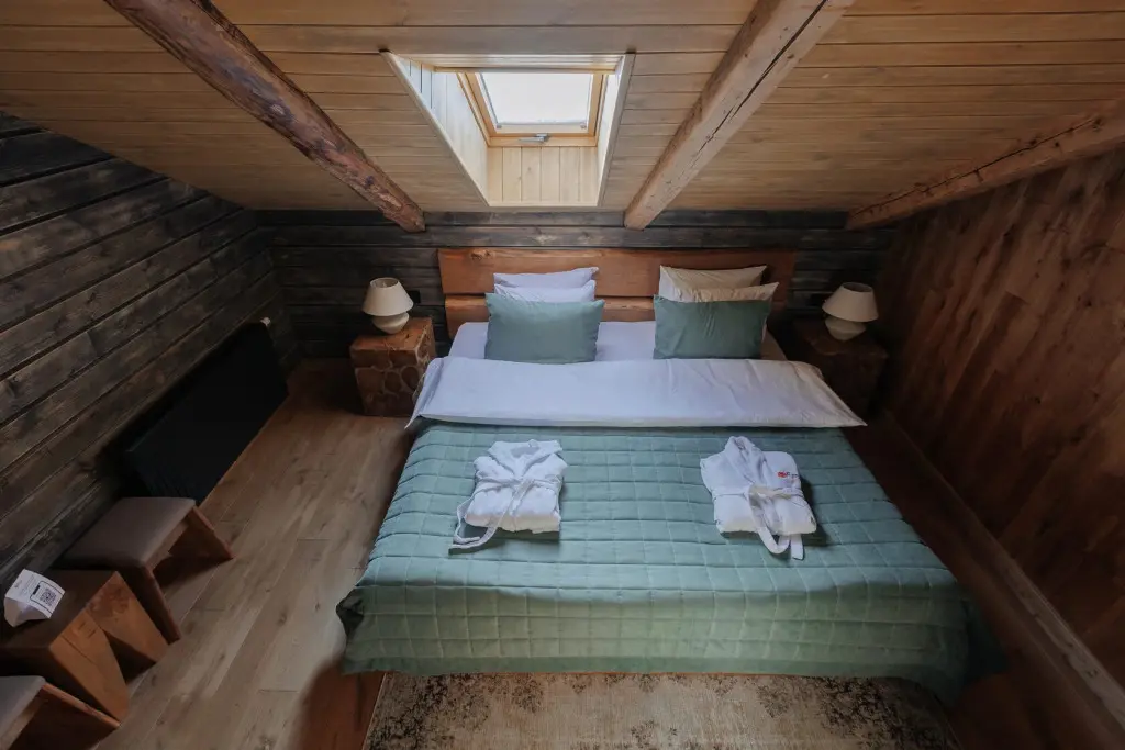 Важным аспектом стало сочетание натуральных, естественных текстур и фактур. Мебель и оформление номеров мы подбирали у локальных ремесленников, ведь именно предметы, сделанные руками создают неповторимую атмосферу. Полы из массива дуба, сантехника их натурального камня, подушки и постельное бельё из жатого льна и хлопка, расшитое вручную.