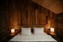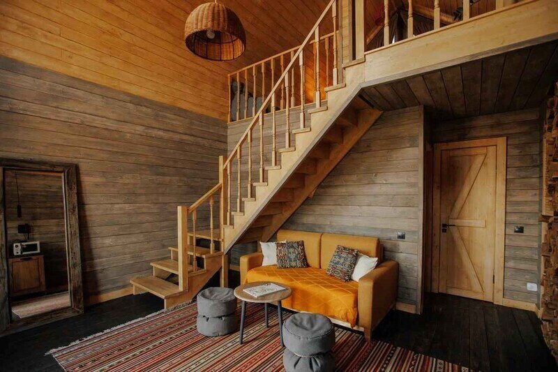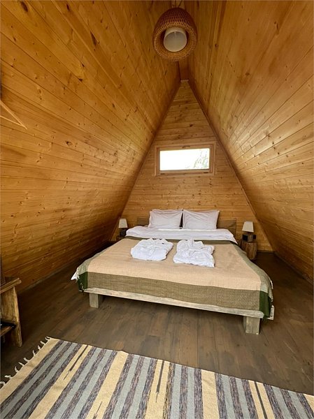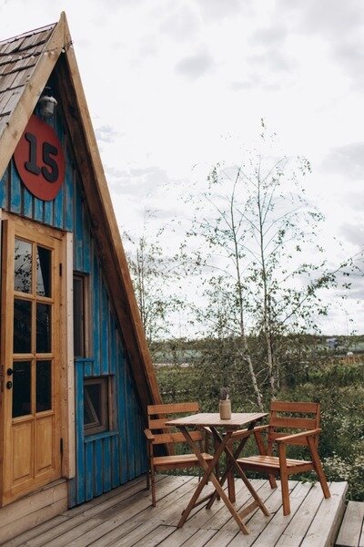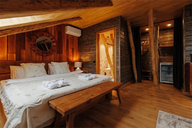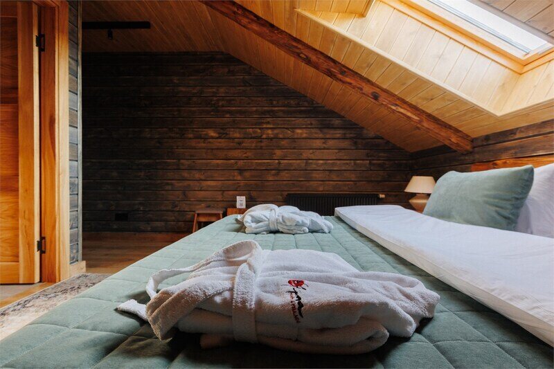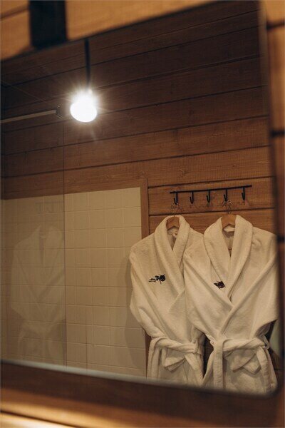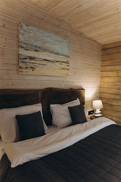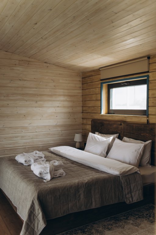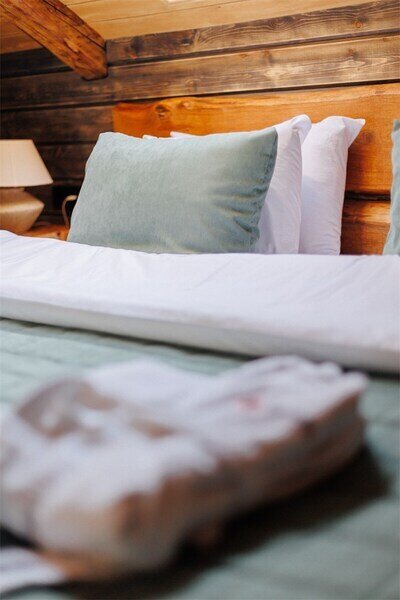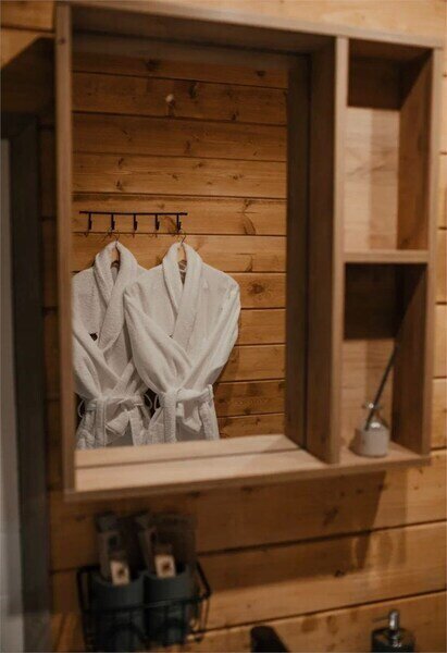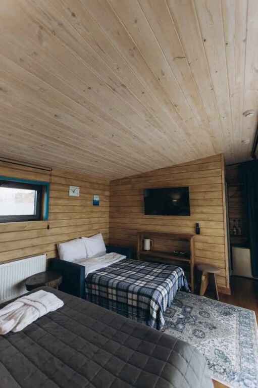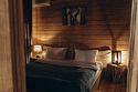 Двухместный уютный глэмпинг для любителей уединенного отдыха на природе. Глэмпинг оснащен всем необходимым для комфортного отдыха — кровать размера king-size, косметические принадлежности, полотенца, халаты и тапочки. У каждого глэмпинга есть собственная терраса.