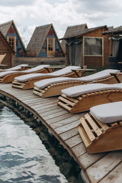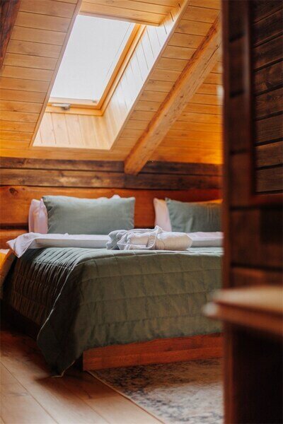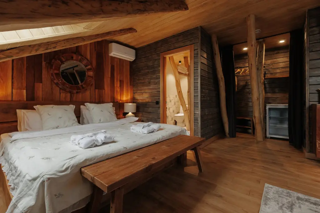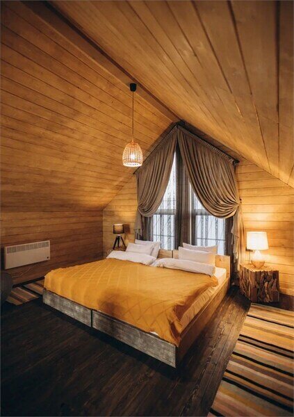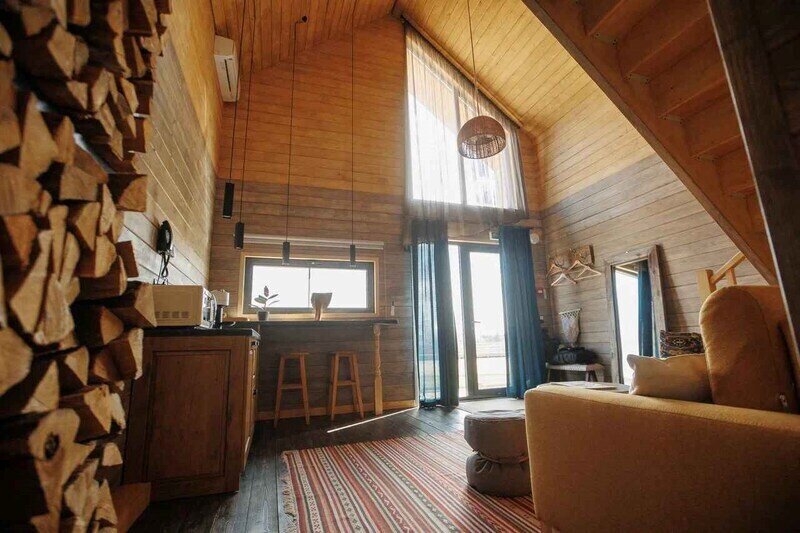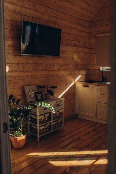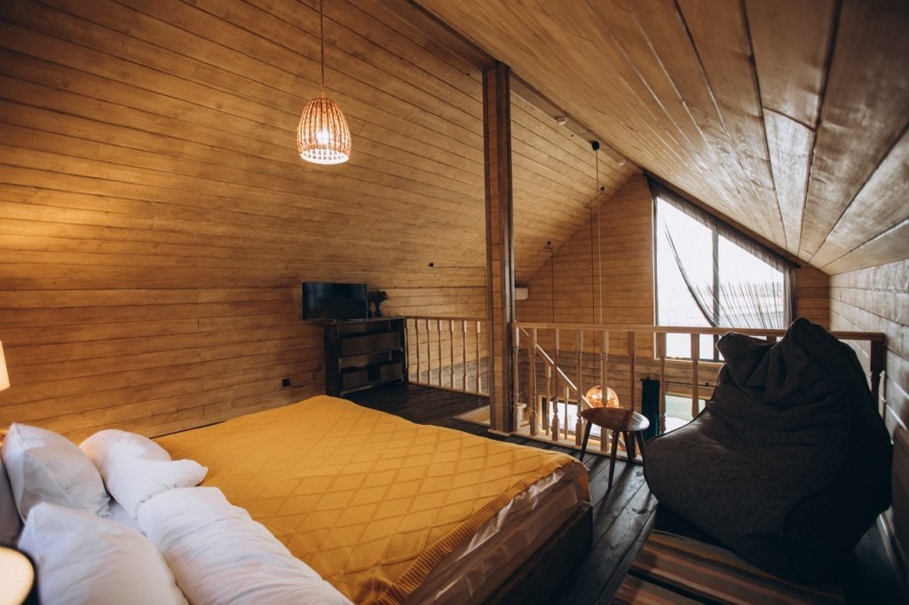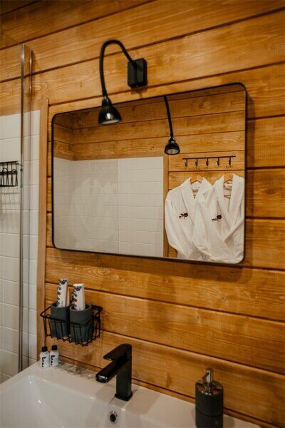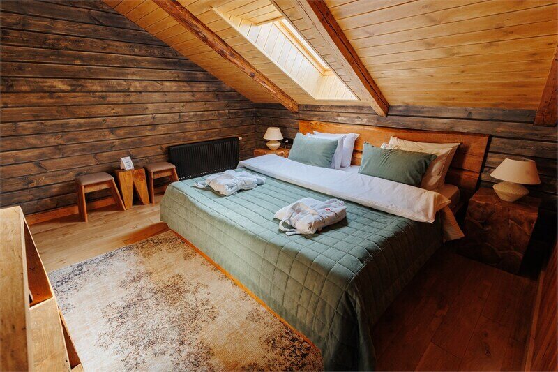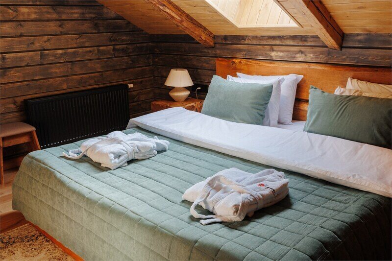 Двухместный уютный глэмпинг для любителей уединенного отдыха на природе. Глэмпинг оснащен всем необходимым для комфортного отдыха — кровать размера king-size, косметические принадлежности, полотенца, халаты и тапочки. У каждого глэмпинга есть собственная терраса.