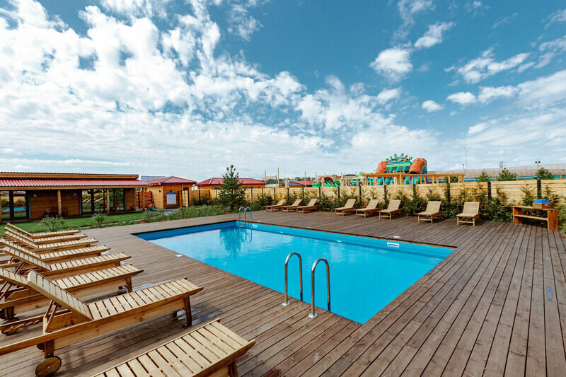 POOL PARK RESORT — это новый формат туристического кластера «Ферма» с обширной территорией Парка, уединённым бассейном, детскими горками и своим собственным песчаным пляжем. Именно на этой территории располагаются уютные трехместные номера Deluxe Poolside для любителей уединенного отдыха на природе. Делюкс укомплектован всем необходимым для комфортного отдыха — кровать размера king-size, гардеробная, косметические принадлежности, полотенца, халаты и тапочки. Каждый номер оснащён отдельным входом.