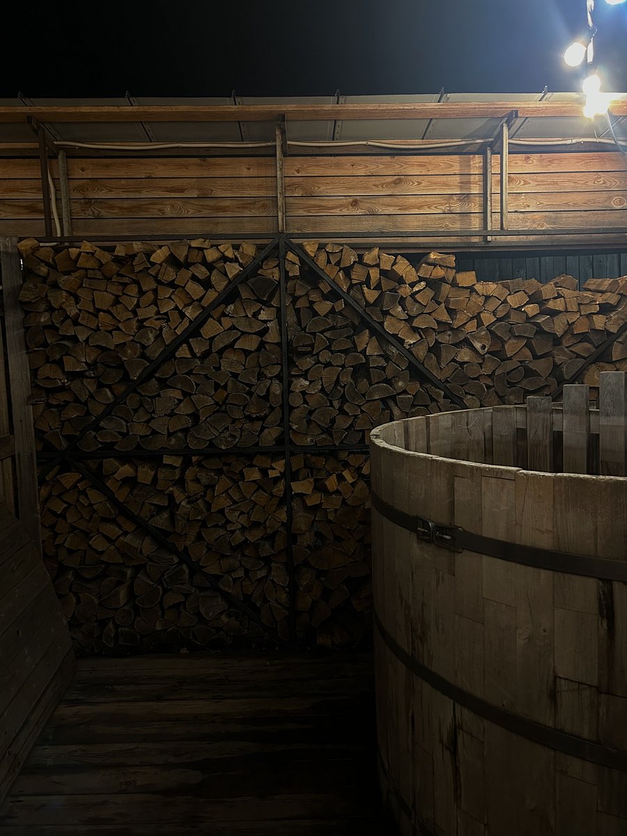 Уличная купель на дровах. Бронирование купели возможно за 8 часов до посещения банного комплекса — 2500 ₽/час.