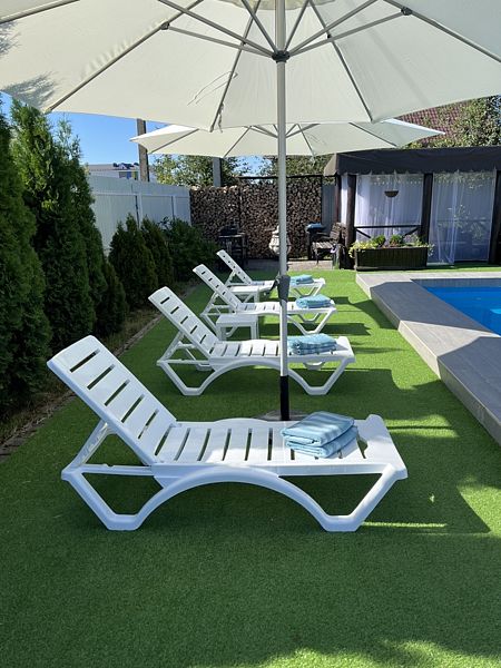 Тип бассейна: открытый бассейнРядом с бассейном: шезлонги, полотенцаРазмеры: 4 x 7 мПлощадь: 28 м²Глубина: 1600 смКомфортабельный сезонный бассейн с постоянной фильтрацией воды.