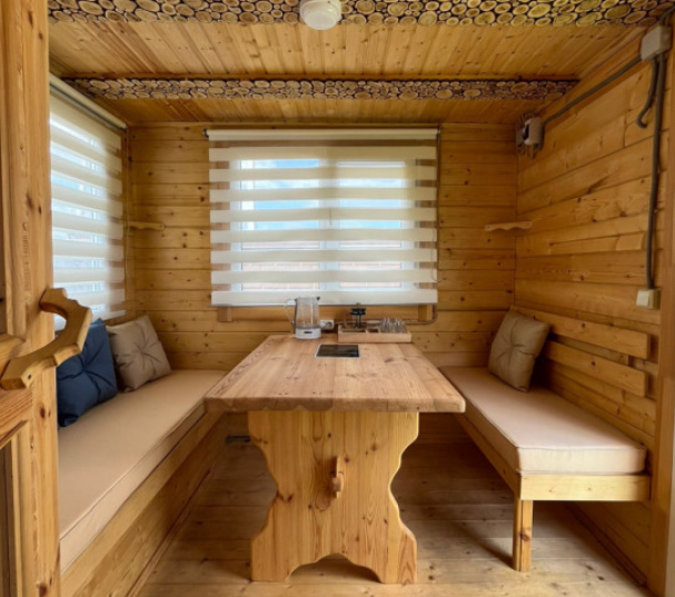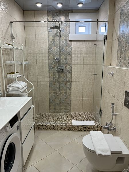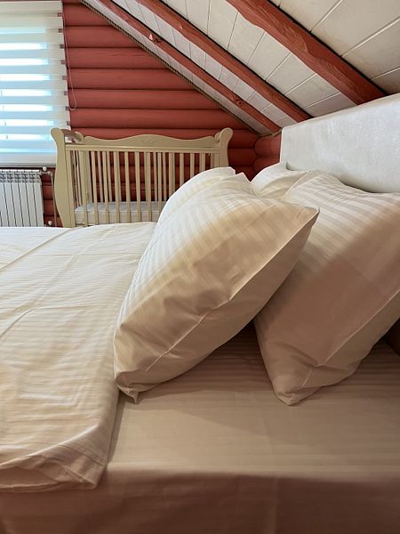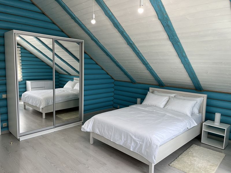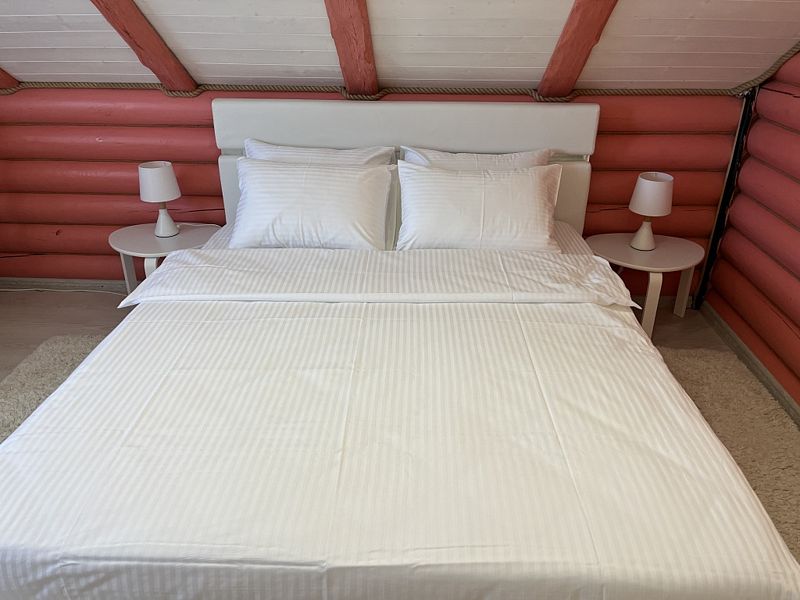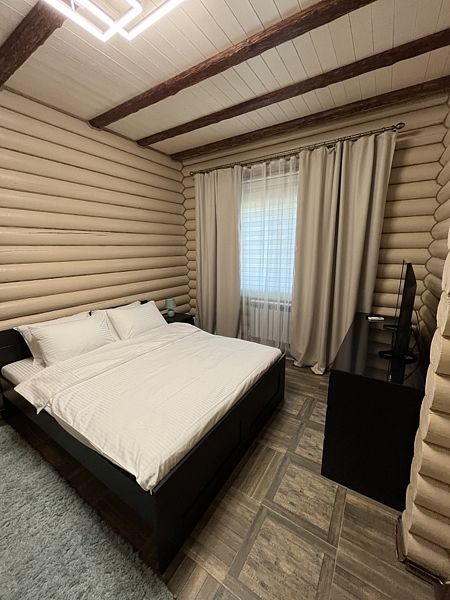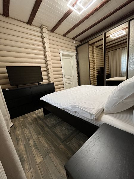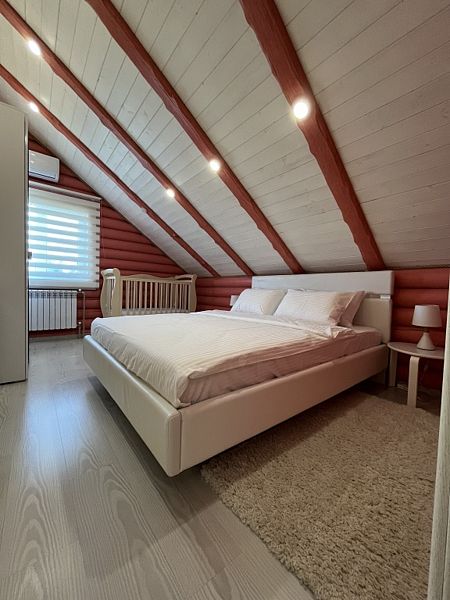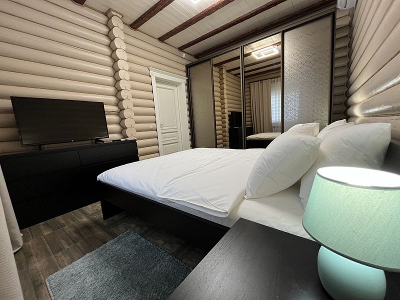 Просторная кухня-гостиная со всей необходимой мебелью и бытовой техникой; 4 спальни и кровати с ортопедическими матрасами; два санузла с ванной, душевой и гигиеническими средствами; баня и чан.