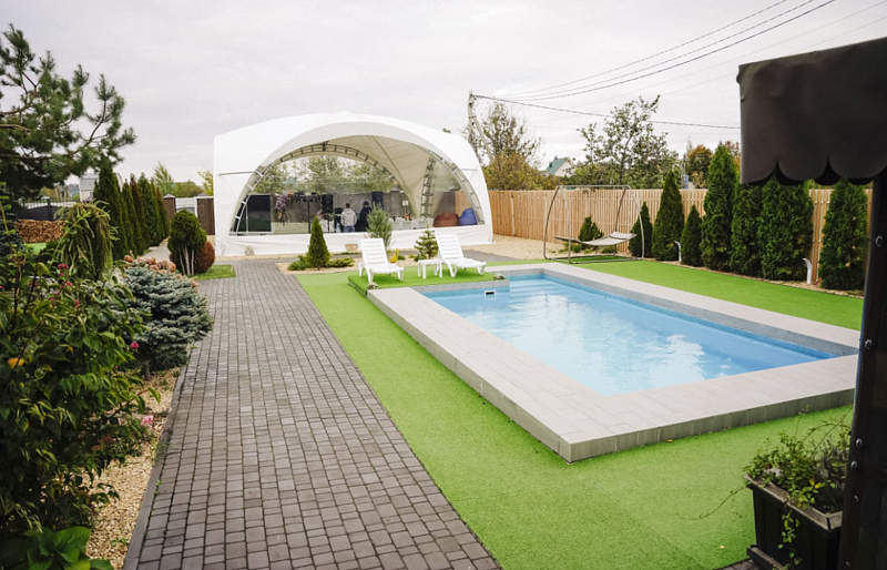 Для развлечения и отдыха на территории есть аквабеседка — чан на дровах; русская баня с дубовыми вениками; тёплый бассейн 7 м x 4 м, глубиной 1.60 м, с постоянной фильтрацией воды. Также есть зона барбекю и беседка, мангал, казан на 12 л, тандыр, решётка, шампура, мебель из ротанга, пледы для прохладных вечеров.