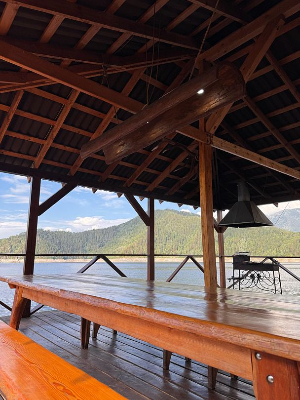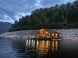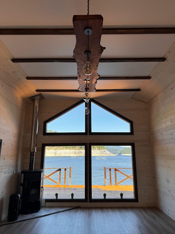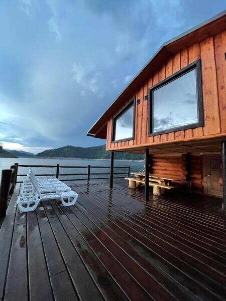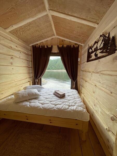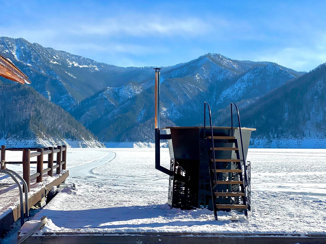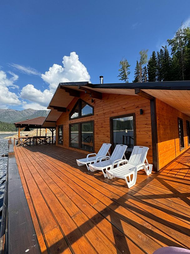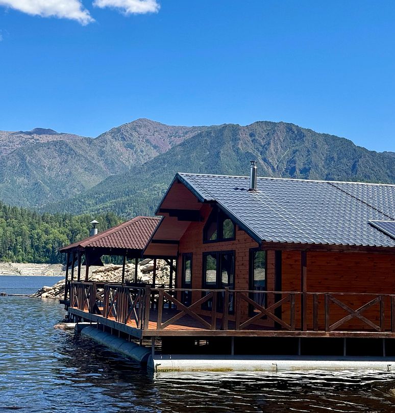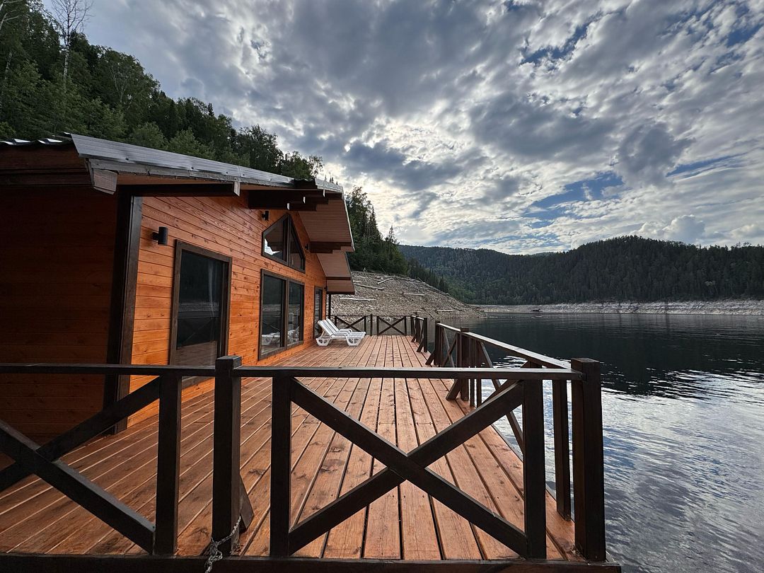 Плавучие комплексы расположены на удалении друг от друга, вблизи береговой линии, с видом на водохранилище, горы и лесную чащу, что обеспечивает уединенную атмосферу. Улов можно сразу приготовить на углях, а после бани – освежиться в чистой воде водохранилища.