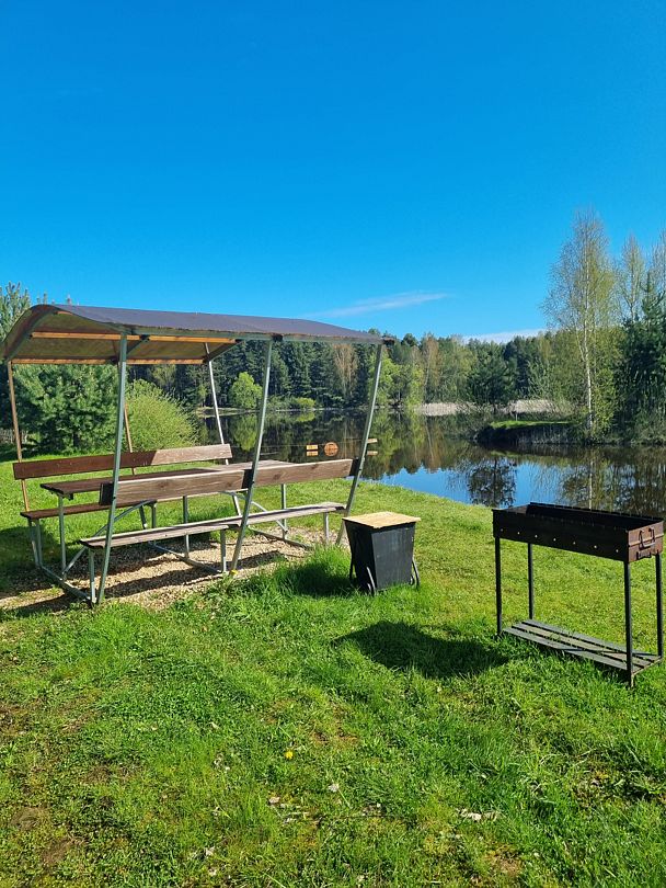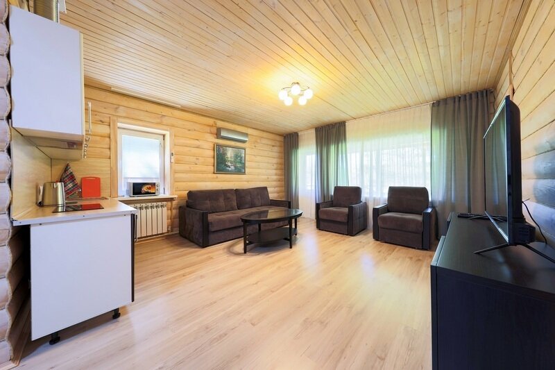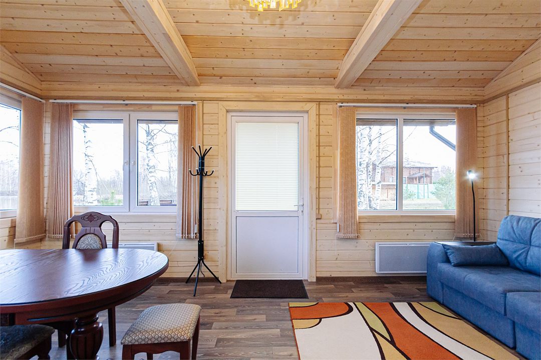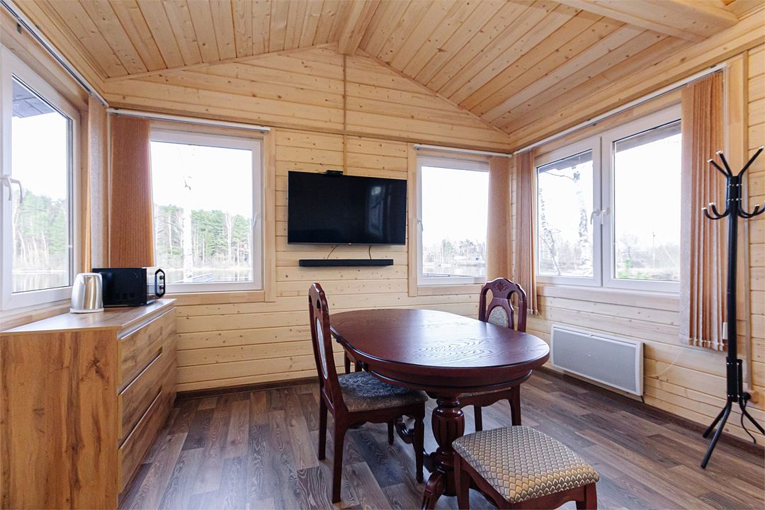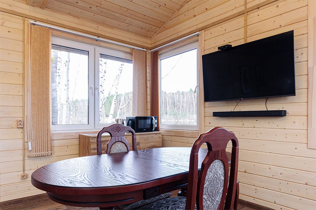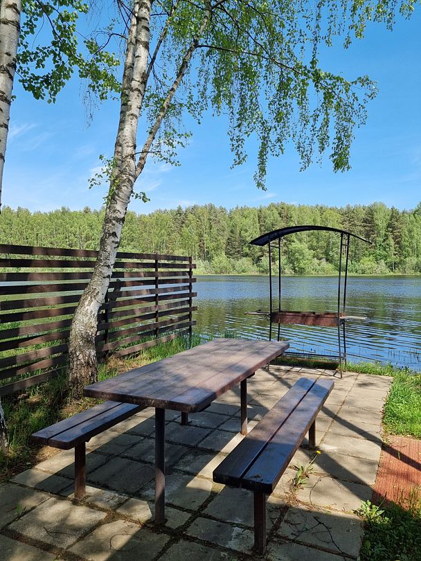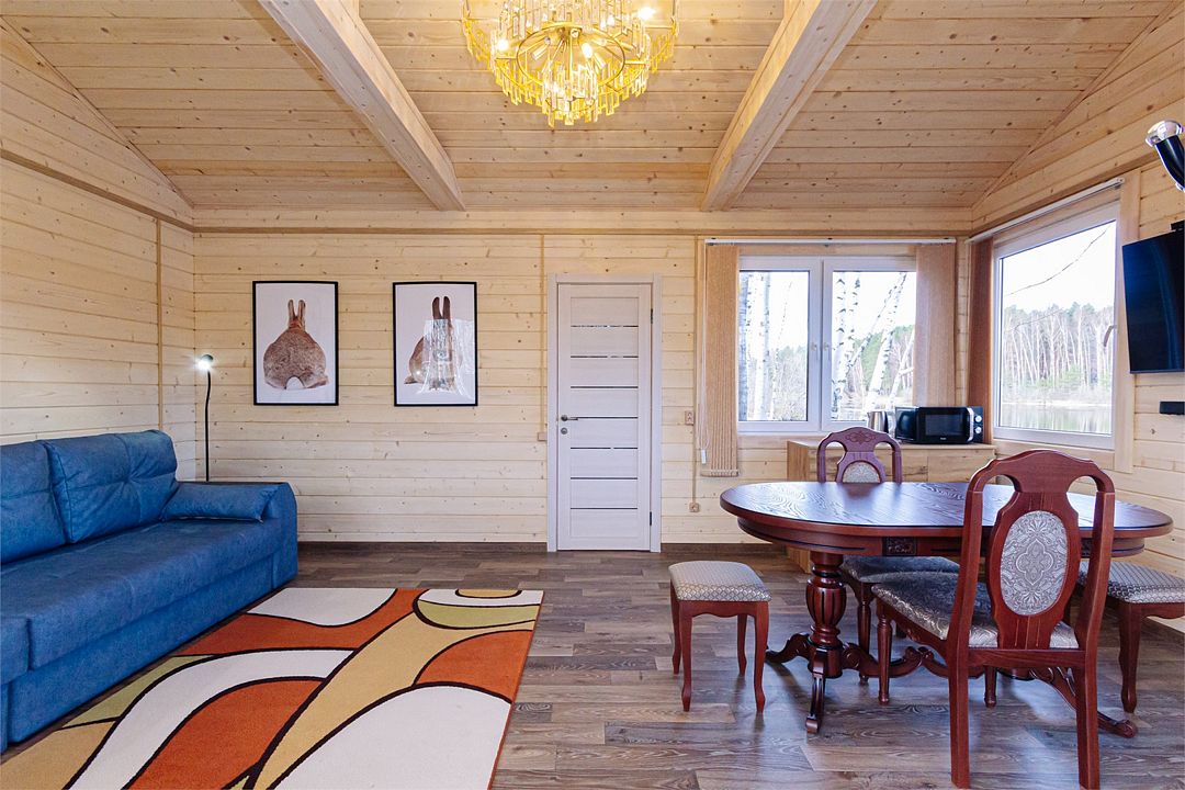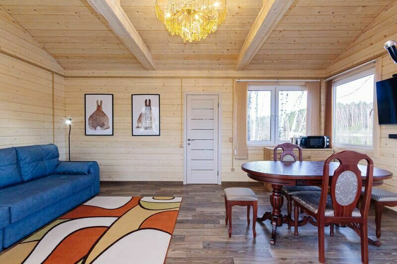 Из окон открывается прекрасный вид на реку Чеснава. Гостиная – место, где можно провести время большой компанией. На кухне можно разогреть в микроволновке припасённую еду, вскипятить чай и собрать за столом компанию. Рядом с домом– мангальная зона (аренда уже включена в стоимость проживания).