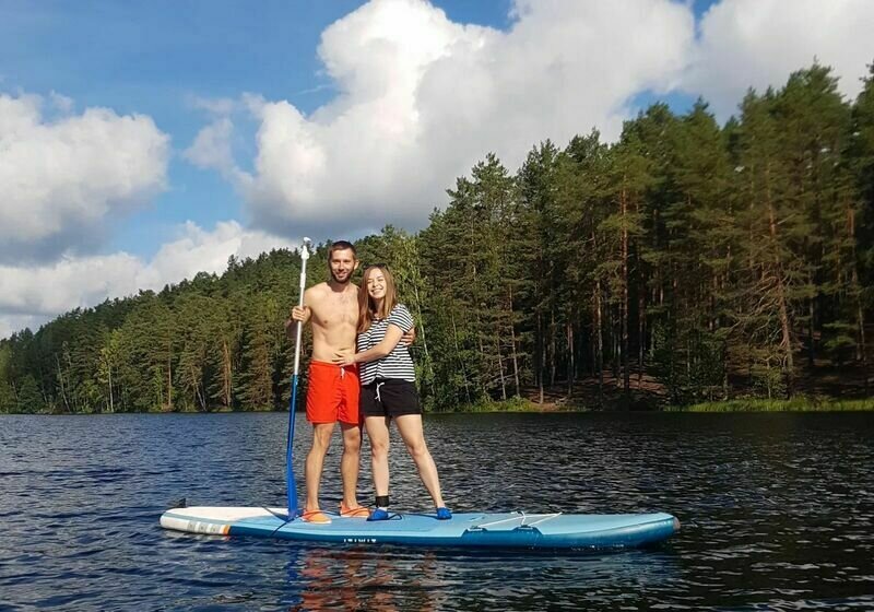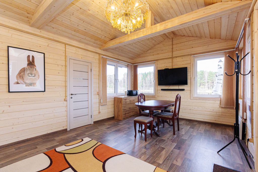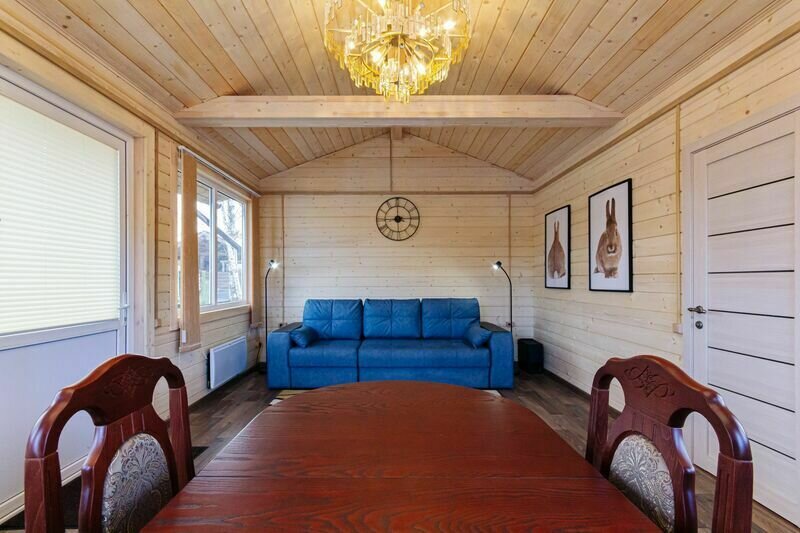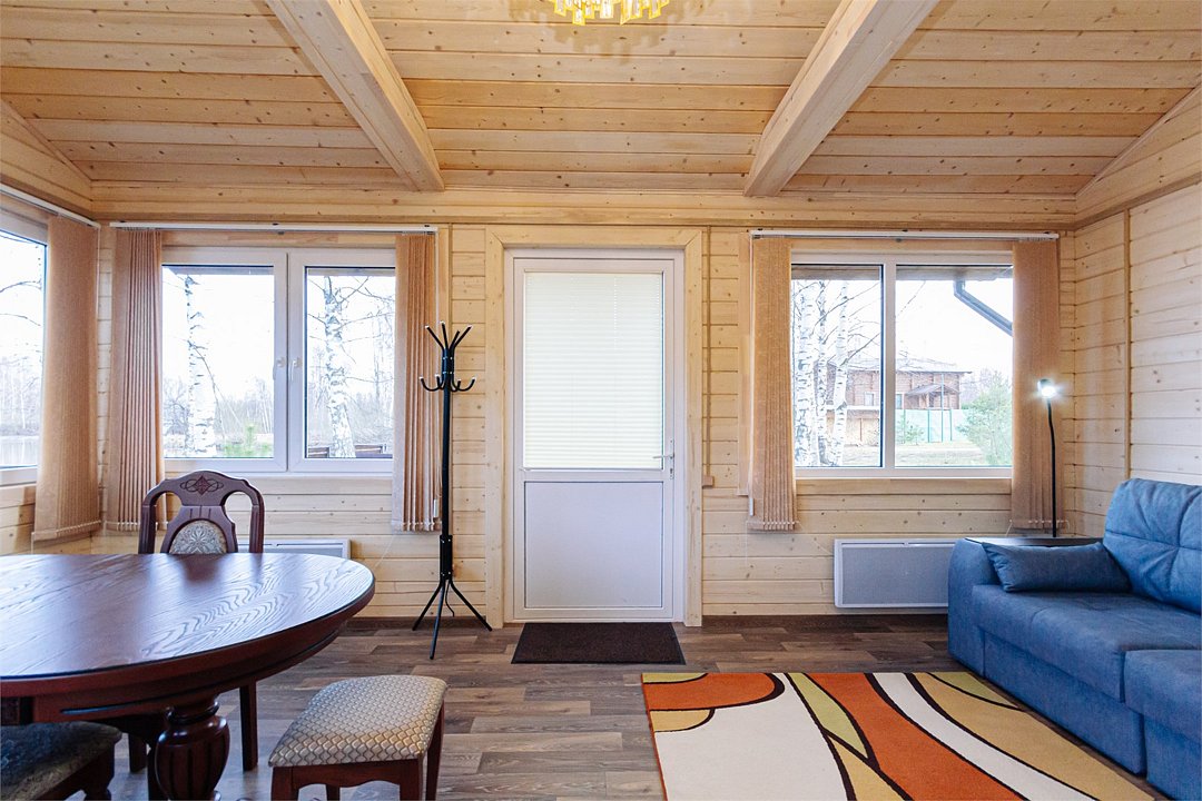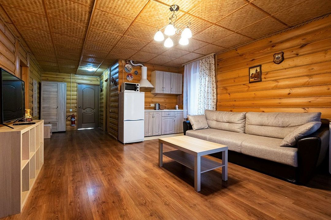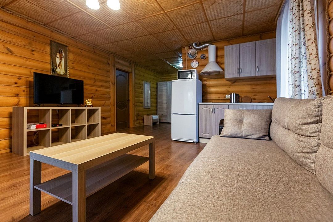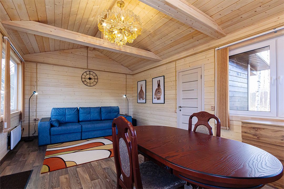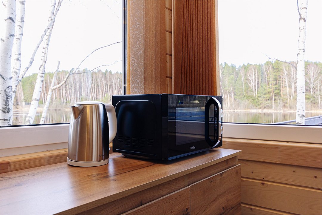 Из окон открывается прекрасный вид на реку Чеснава. Гостиная – место, где можно провести время большой компанией. На кухне можно разогреть в микроволновке припасённую еду, вскипятить чай и собрать за столом компанию. Рядом с домом– мангальная зона (аренда уже включена в стоимость проживания).