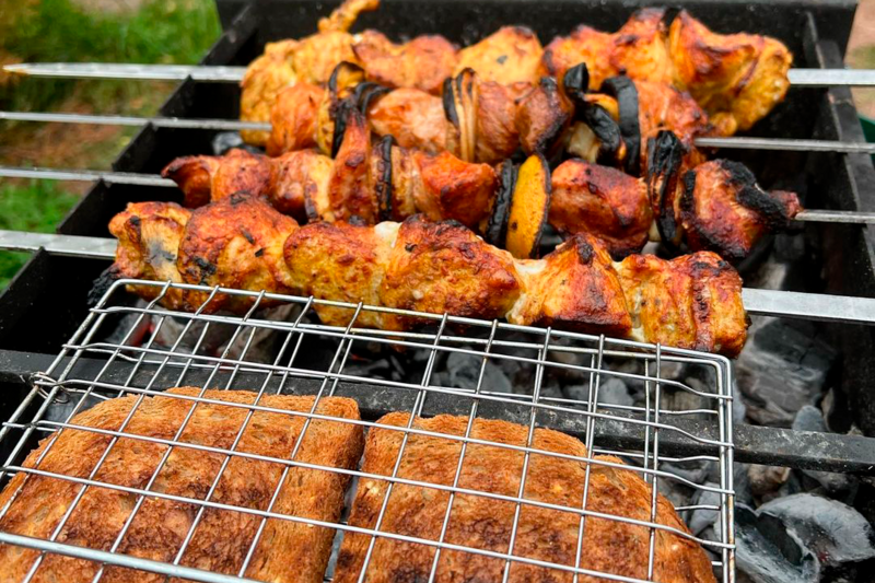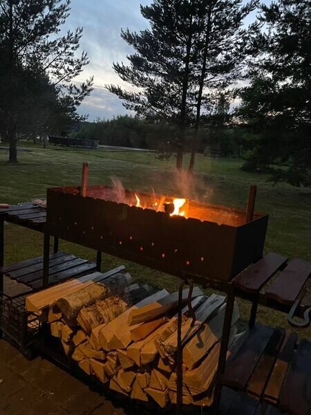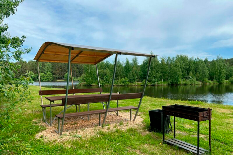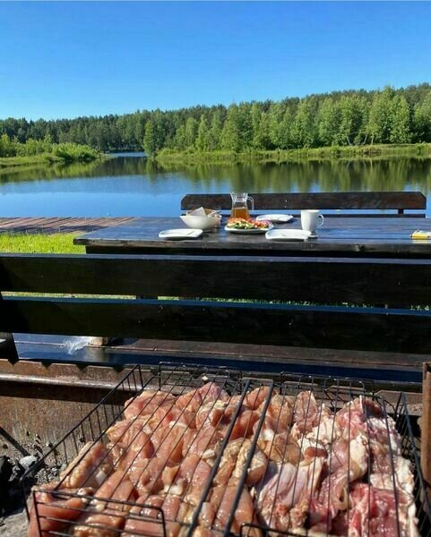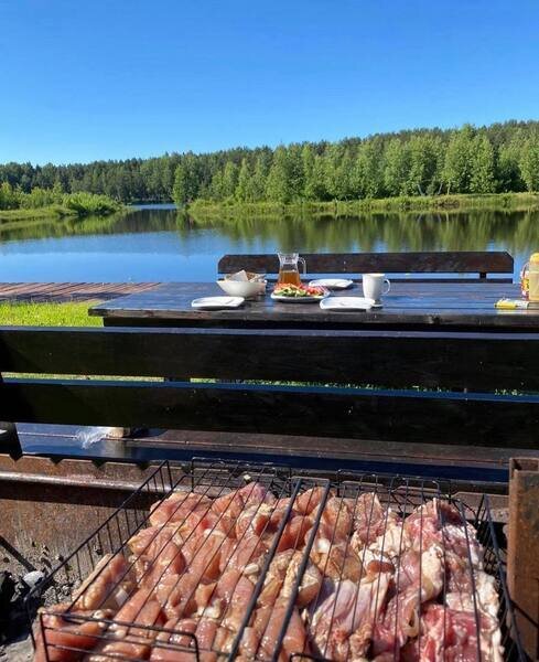 Проживая в коттеджах у гостей есть возможность готовить еду самостоятельно (кухня в коттеджаж оборудована всем необходимым для приготовления еды), а для проживающих гостей в гостиничных номерах предоставляется бесплатная беседка с мангалом на берегу реки Чеснава.