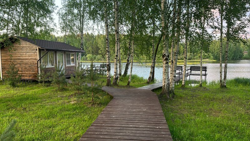 Уютный дом на берегу реки, вместимостью до 2-х человека. Дом расположен в живописном месте Рыбинского водохранилища на берегу реки Чеснава.