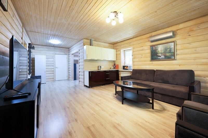 Коттедж для семейного отдыха с 2 спальнями и гостиной, совмещенной с кухней.
