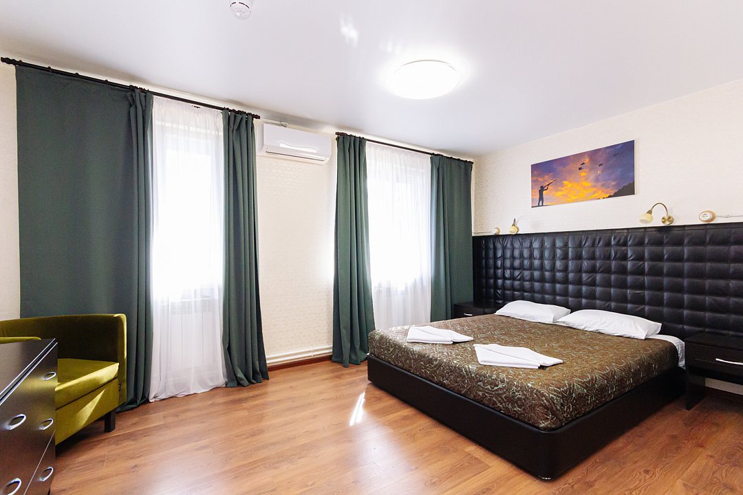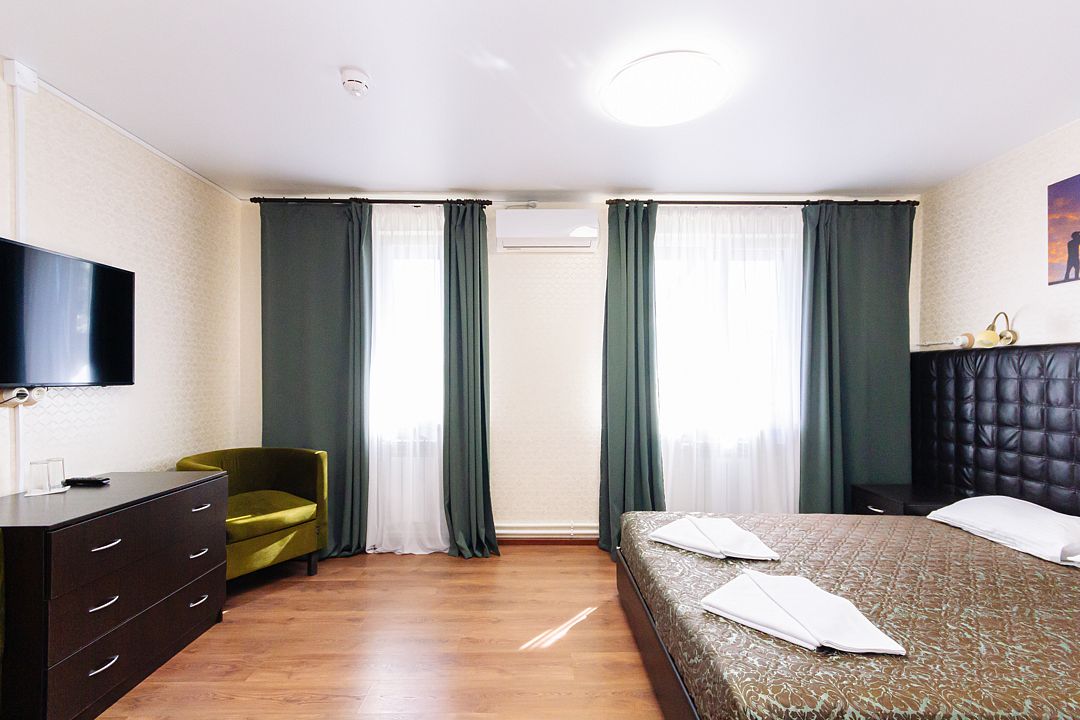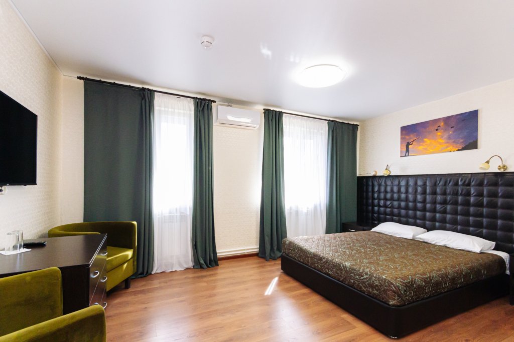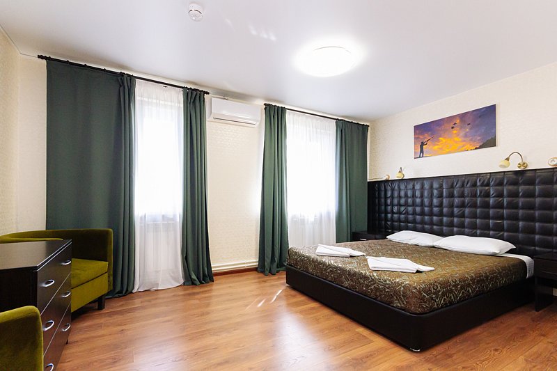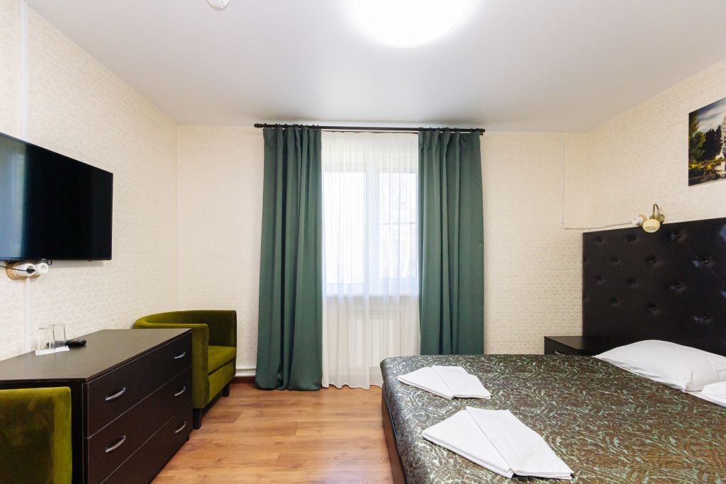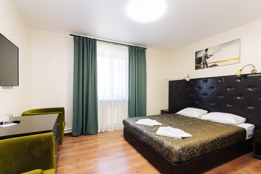 Семейный номер 18,2 м2 с двуспальной кроватью и доп. местом по доступной стоимости для 2 взрослых + 1 ребенка.