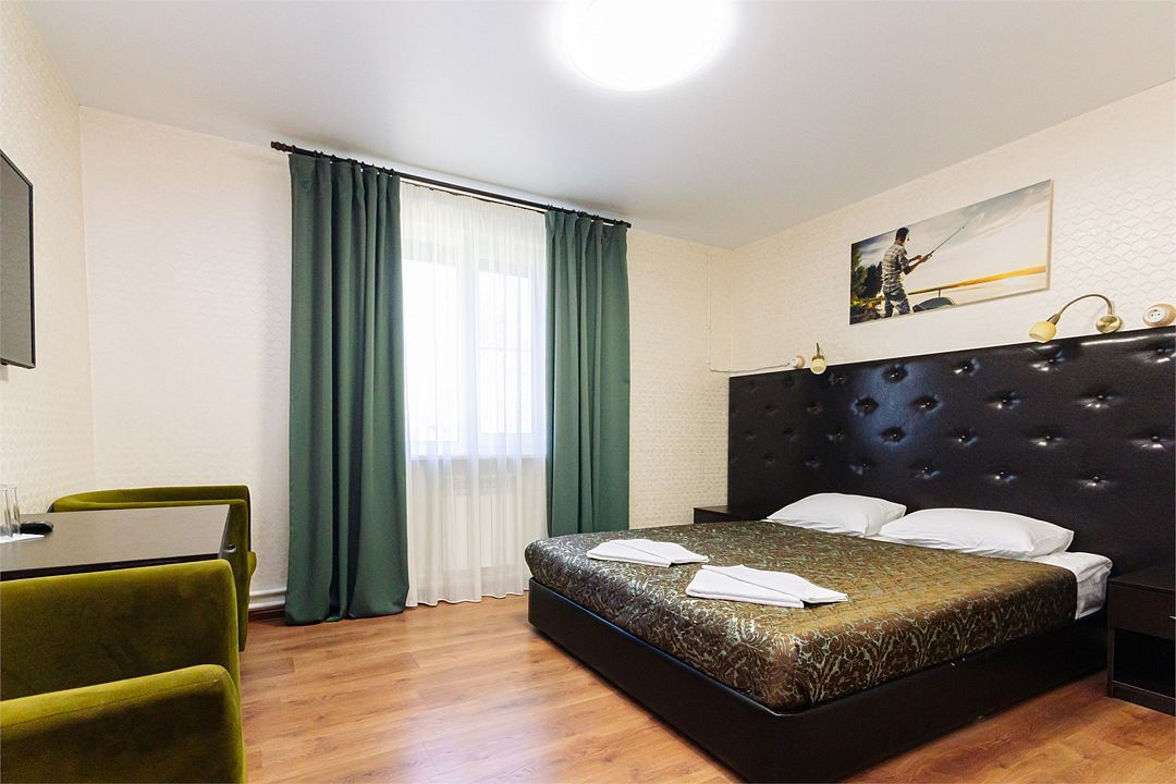 Стандартный двухместный номер 14,4 м2 с двуспальной кроватью.