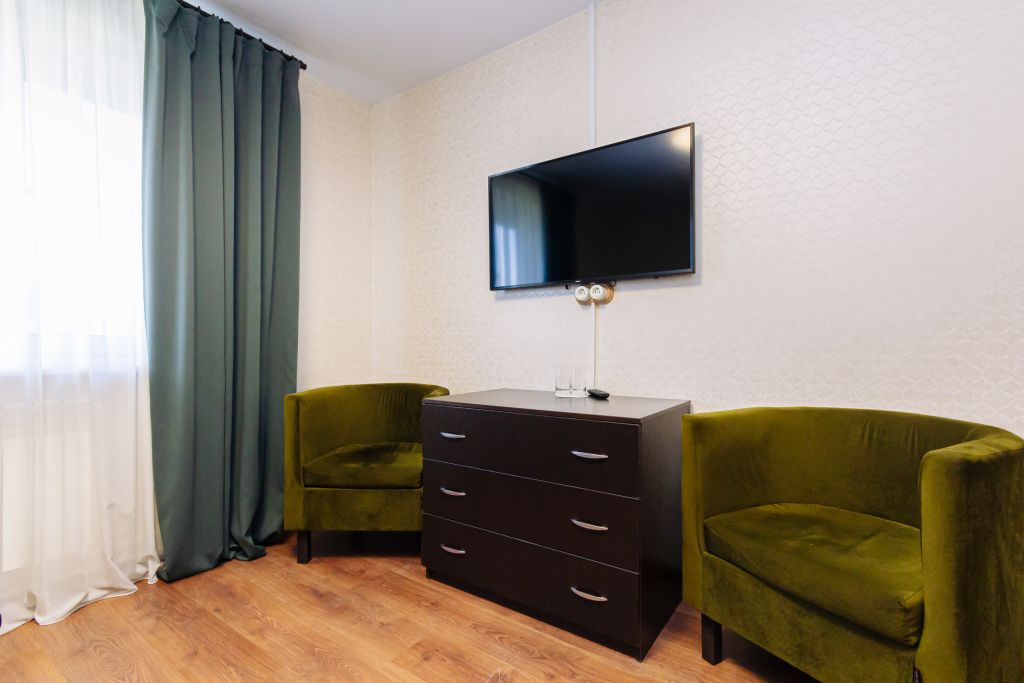 Двухкомнатный, четырехместный номер — категории Стандарт — каждая комната по 14,4м2, с туалетом и душевой кабиной.