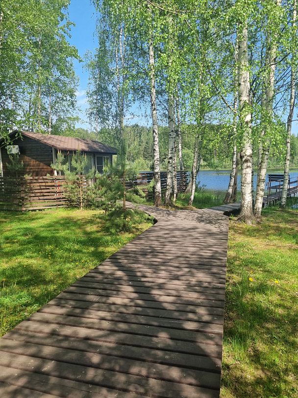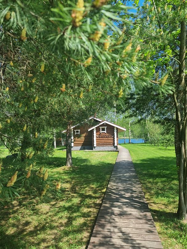 Уютные коттеджи, расположенные в живописном месте Рыбинского водохранилища, в окружении сосен и берез. В домике: