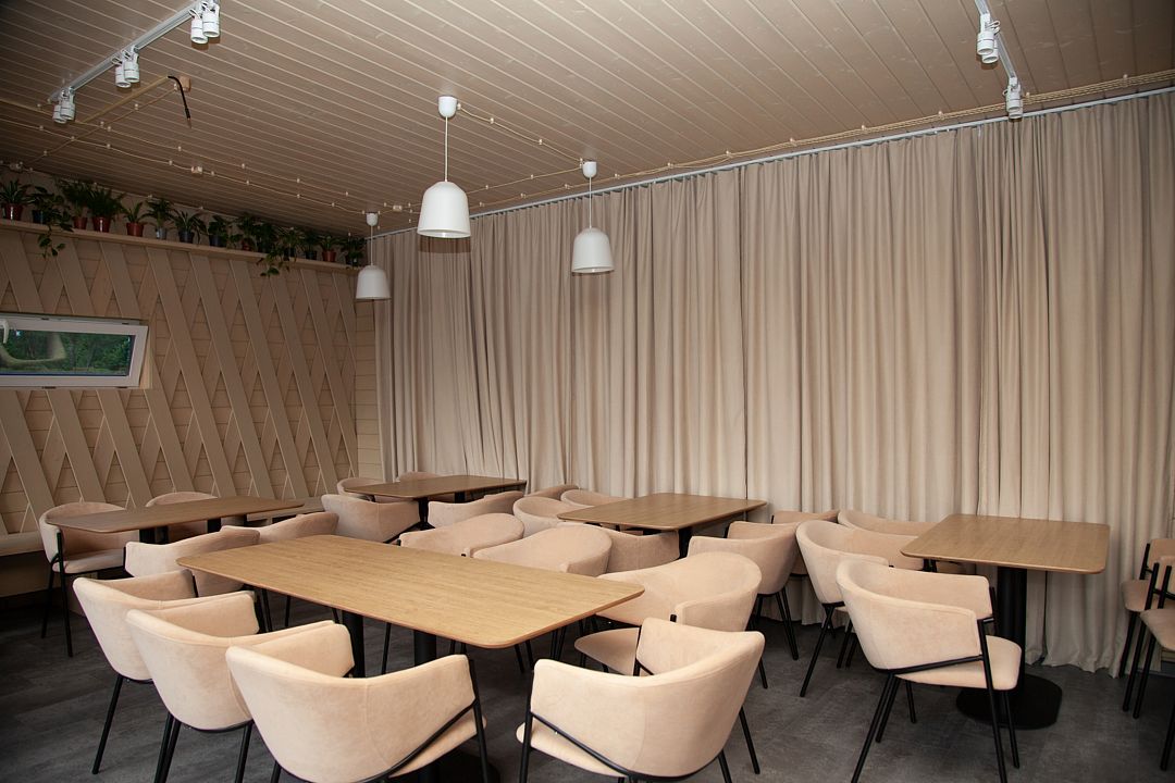 Также на территории работает банкетный зал вместимостью до 30 человек. Он идеально подойдет для проведения торжественных мероприятий и банкетов. К услугам отдыхающих открыта русская баня с электропечью, просторной комнатой отдыха и банным чаном на террасе.