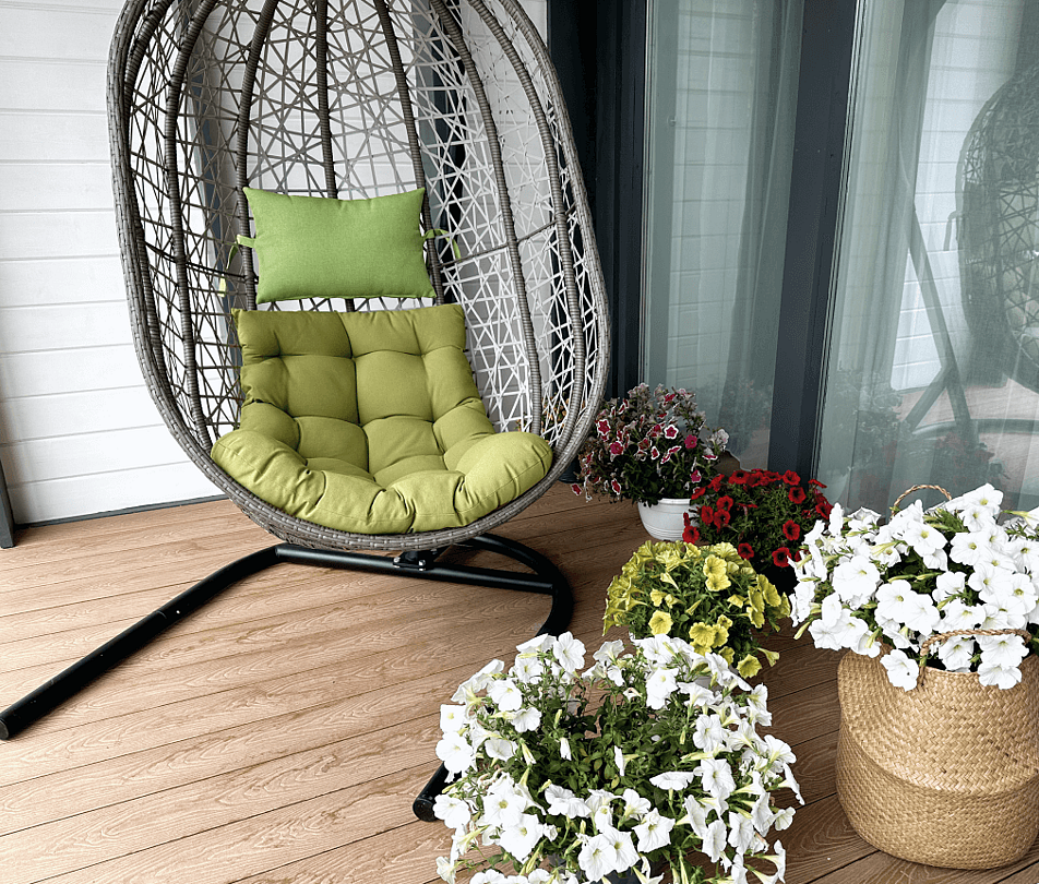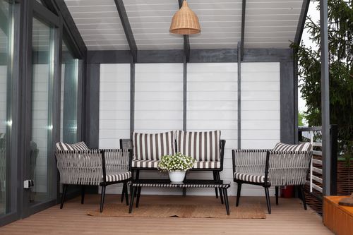 - оборудованная терраса с плетенной мебелью и лежаками;