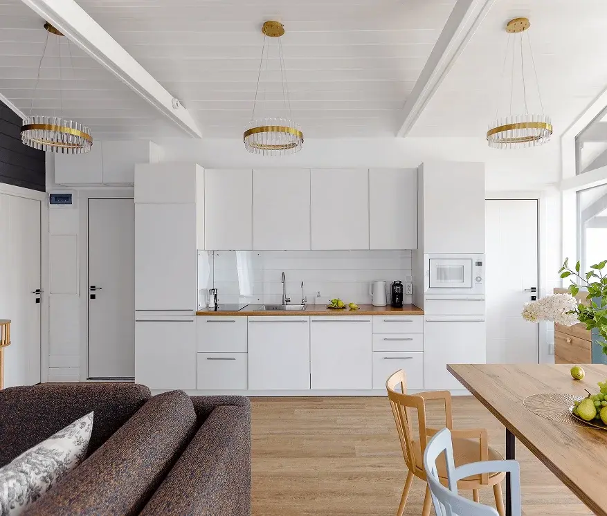 - проживание в стильном доме с 3 спальнями, просторной гостиной и кухонной зоной. Фильтр для воды, посуда, ванные принадлежности, бризер, увлажнитель воздуха, бытовая техника, сейф для ценных вещей и теплый пол;