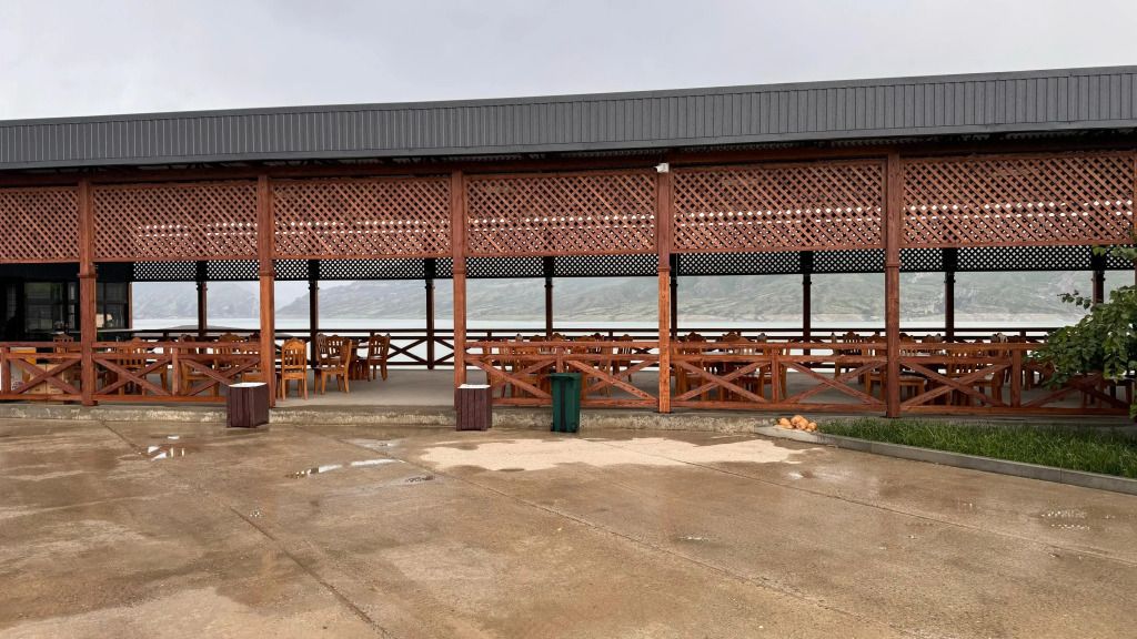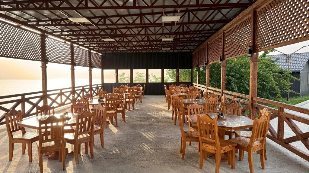 На базе отдыха 10 коттеджей с открытой обеденной зоной и видом на Чиркейское водохранилище. Возможно размещение до 4-6 человек в зависимости от количества спален.
