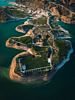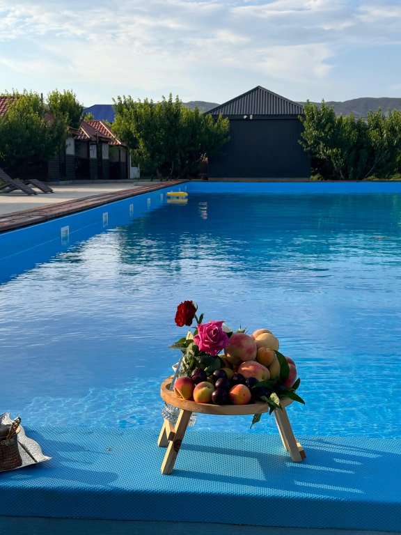 Местный шеф-повар готовит шашлыки и дагестанские лепёшки с начинкой. На территории острова в окружении фруктовых деревьев находится бассейн.