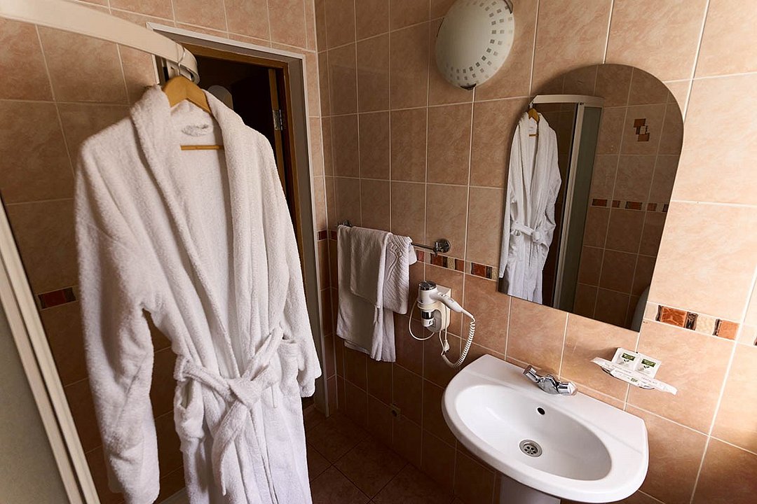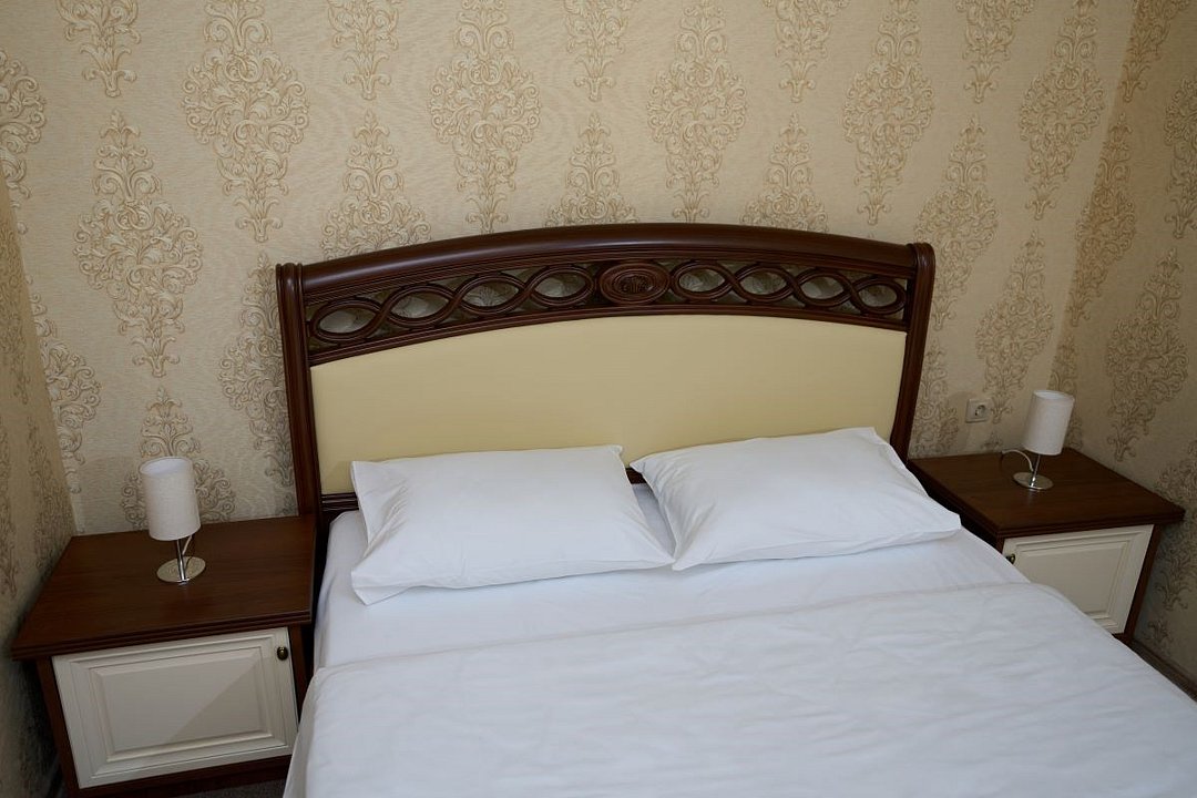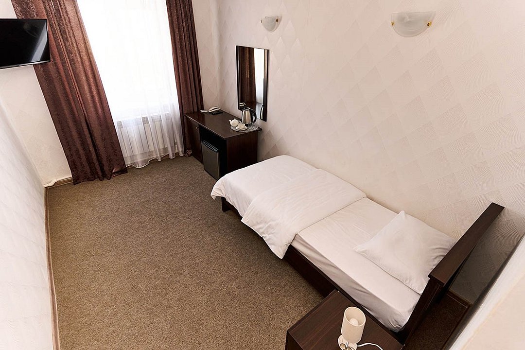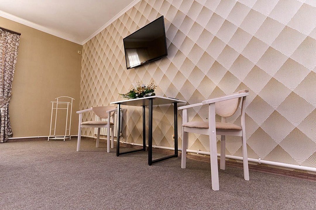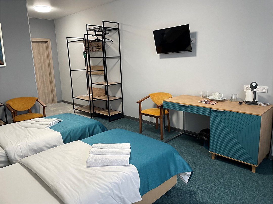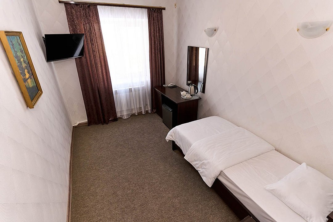 Двухместный стандартный номер, с двумя односпальными кроватями, в номере есть всё необходимое для комфортного отдыха: прикроватные тумбы, рабочий стол, стулья, настольная лампа, цифровое ТВ, Wi-Fi, телефон, мини холодильник, чайник, чайный набор. Ванная комната с душевой кабиной, укомплектована банными принадлежностями, феном, средствами личной гигиены, зубным набором, одноразовыми тапочкамиУслуги и удобства