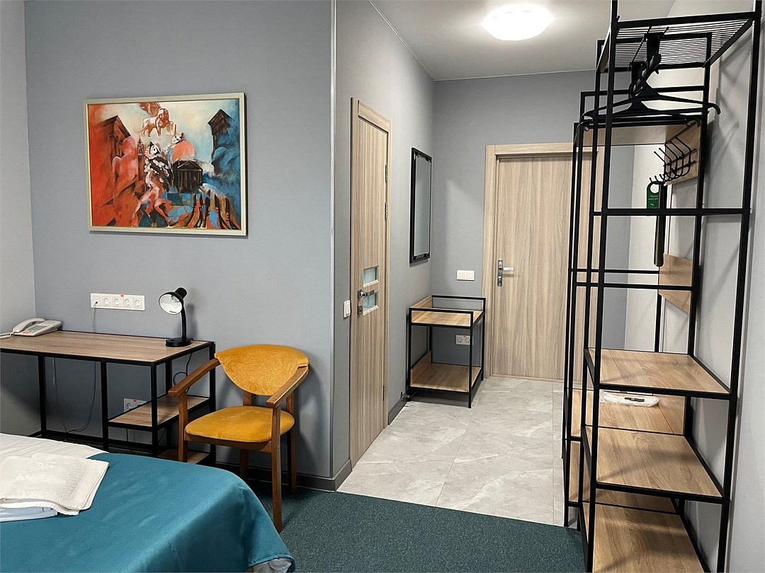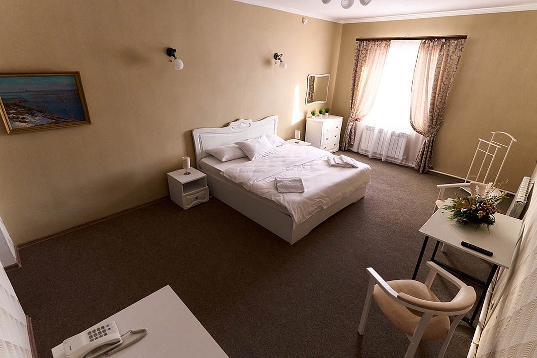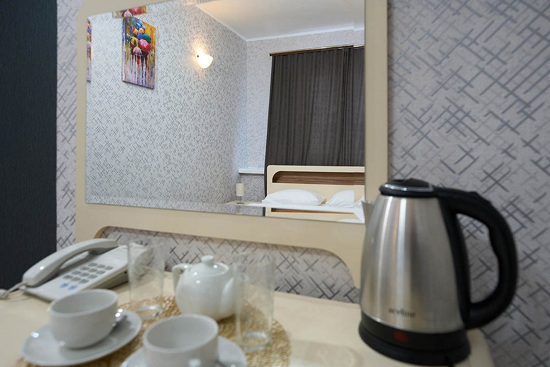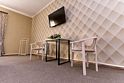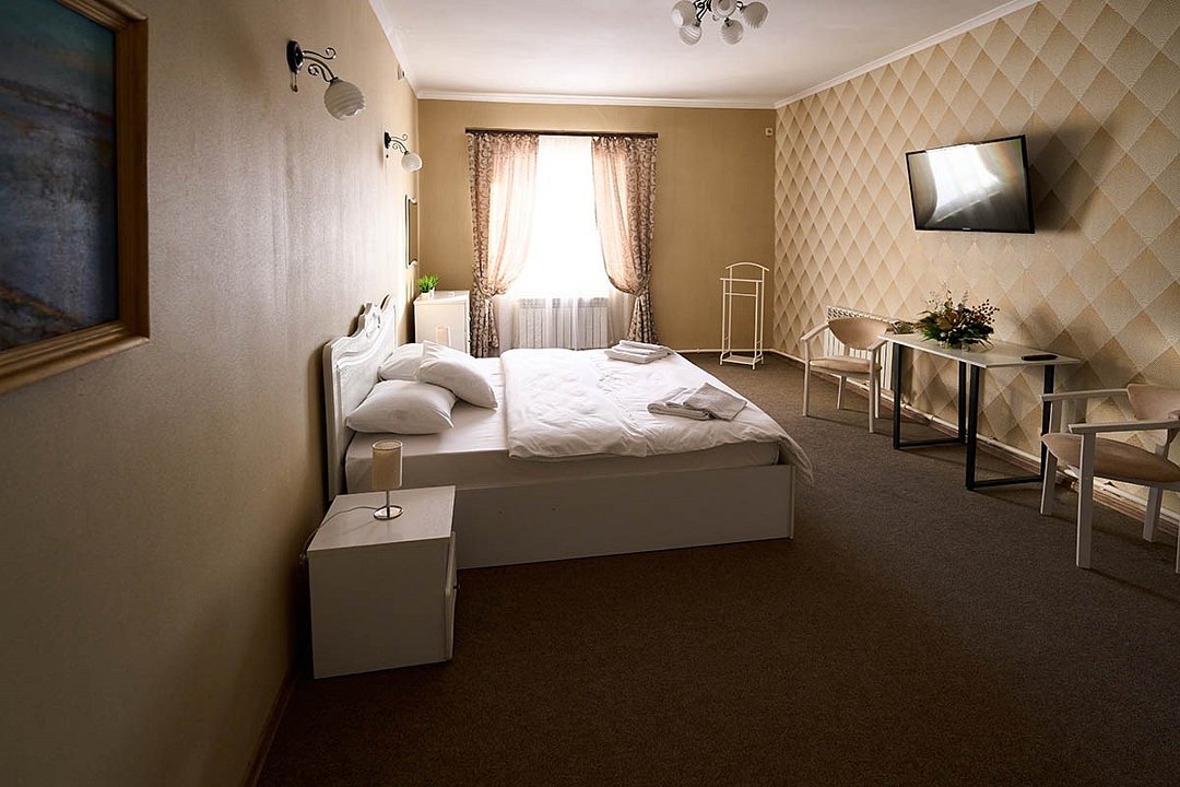 Гостиничный номер повышенной комфортности состоит из одной комнаты, для проживания от одного до двух гостей, King Size Bed 180*200 двуспальная кровать или две односпальные кровати, прикроватные тумбы, стол, стулья, шкаф для одежды, цифровое ТV, телефон, мини холодильник, чайник, чайный набор. Ванная комната оборудована ванной или душевой кабиной, банными принадлежностями, феном, средствами личной гигиены, зубным набором, одноразовыми тапочками.Услуги и удобства
