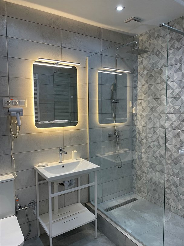 Просторный номер на первом этаже, удобен для группового размещения и большой семьи. В номере есть всё необходимое для полноценного отдыха, раздельные кровати, прикроватные тумбы, телевизор с плоским экраном, мини холодильник, чайник, чайная посуда. В ванной комнате расположена раковина для умывания, душевой поддон, унитаз, фен. Гостям предоставляются банные полотенца, средства личной гигиены (мыло, шампунь, гель).Услуги и удобства