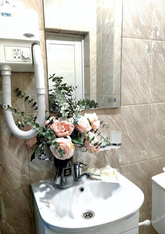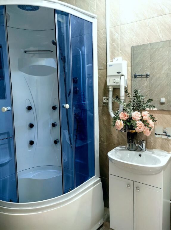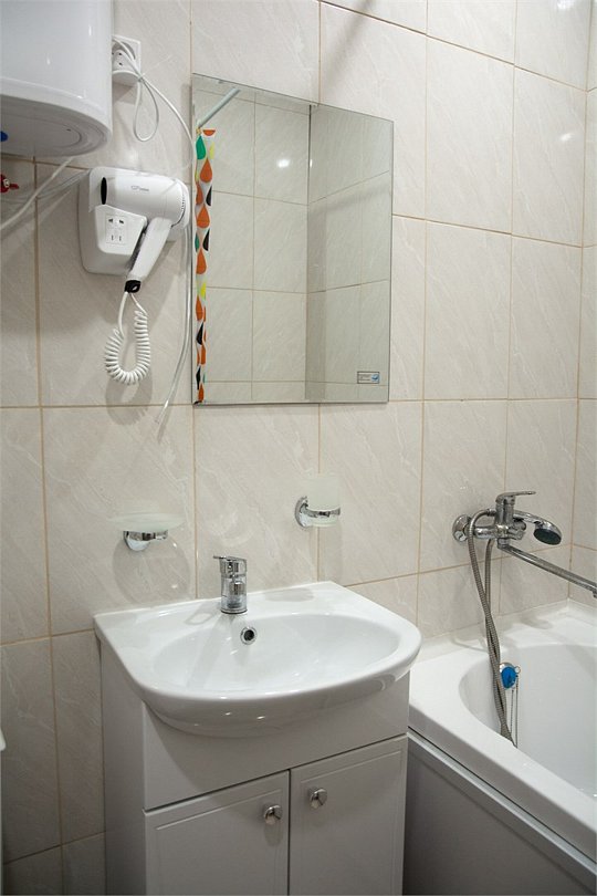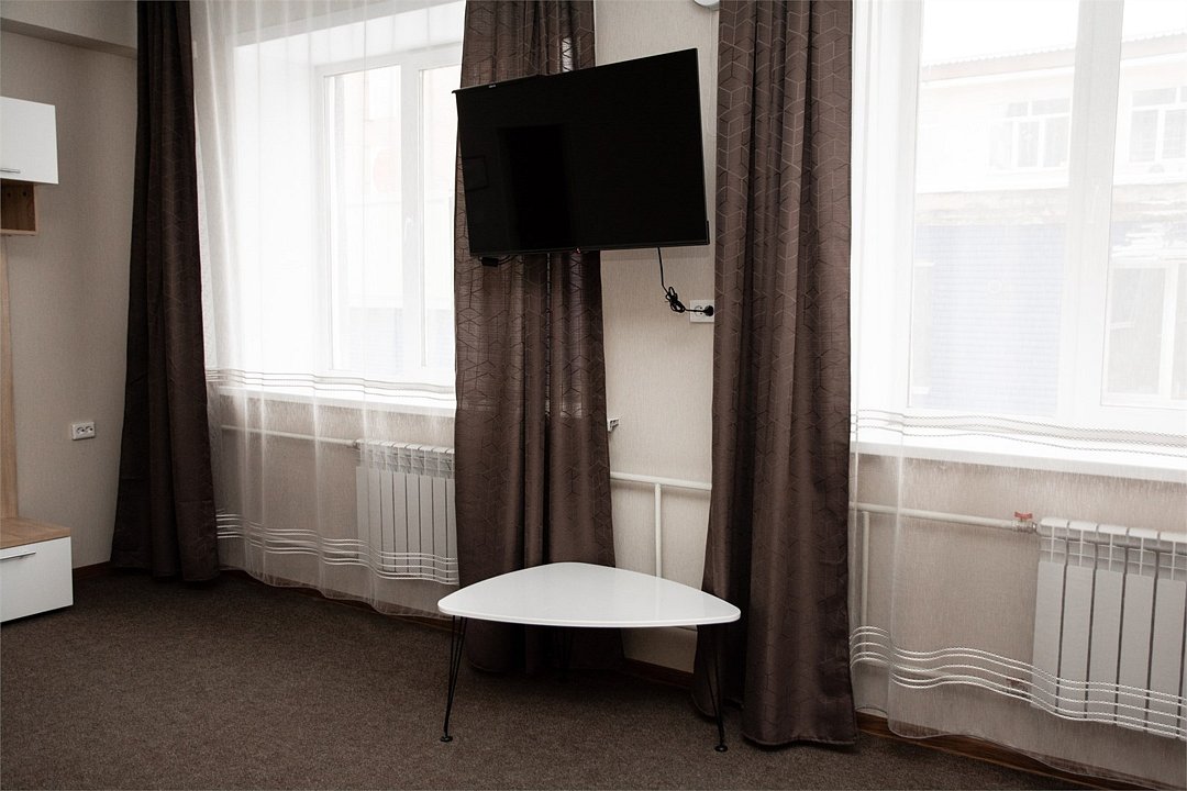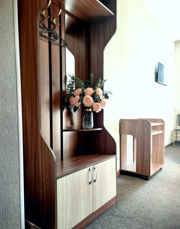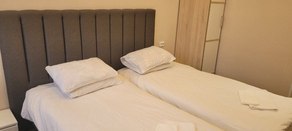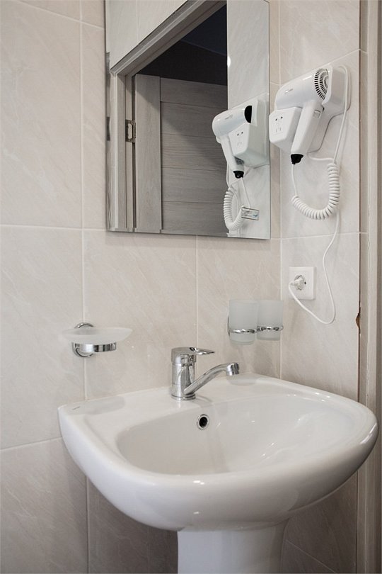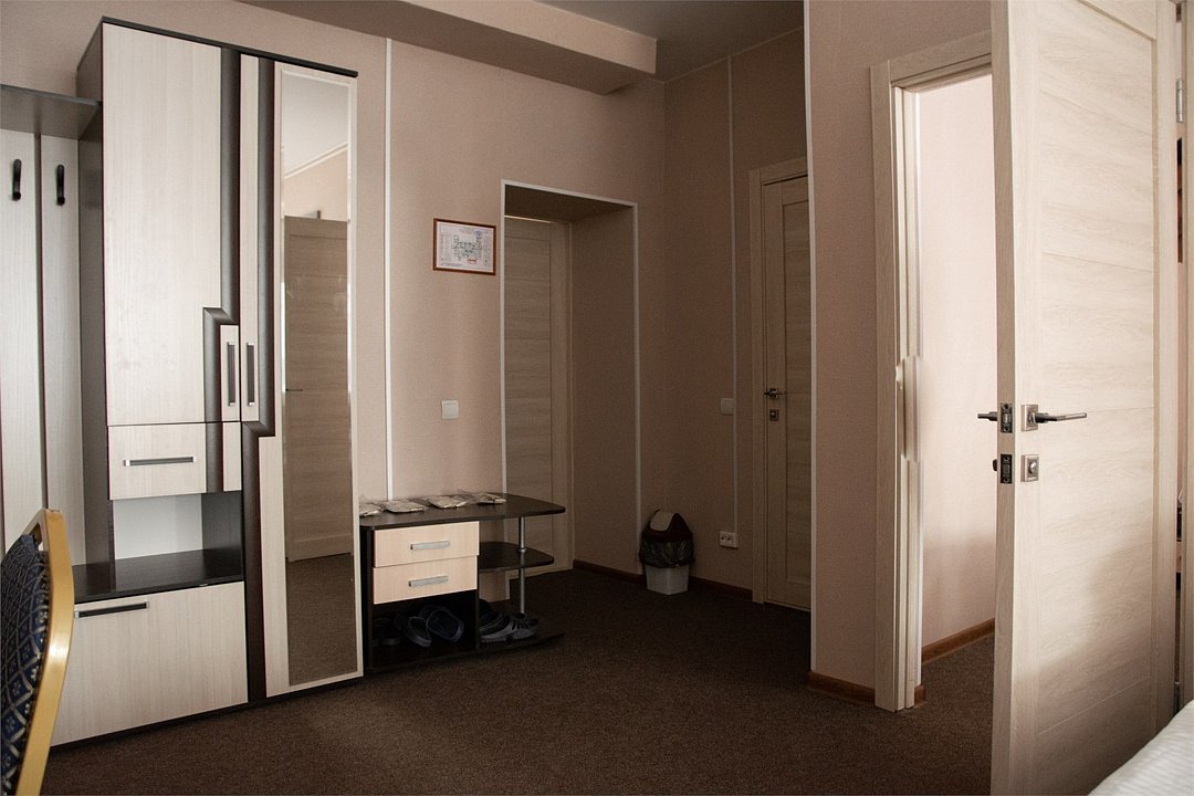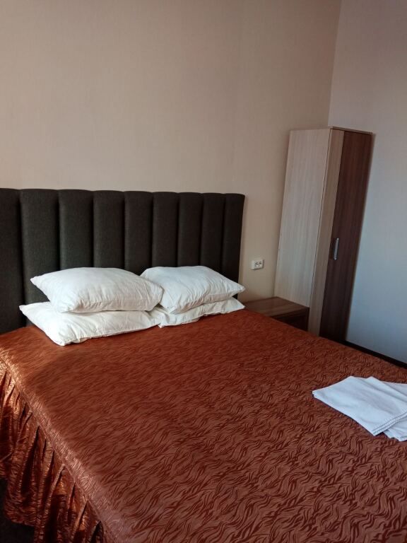 Две кровати, стол, стул, тумбочка, телевизор, душевая кабина/ванна, туалет, раковина, Wi-Fi, чайник, фен, туалетные принадлежности, телефон. Пассажирский лифт для гостей. Завтрак включен.Номер 5 категория, 3-местный