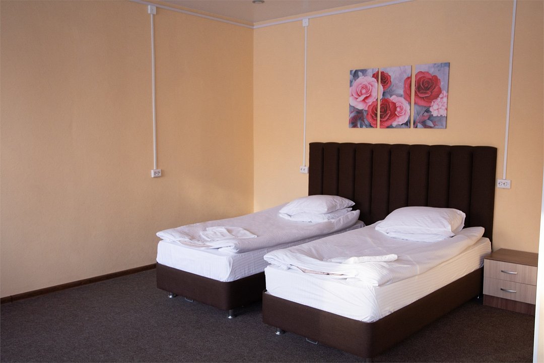 Две кровати, стол, стул, тумбочка, телевизор, Wi-Fi, чайник, туалетные принадлежности, телефон. Санузел и ванная комната находятся на этаже. Пассажирский лифт для гостей. Завтрак включен.Услуги и удобства
