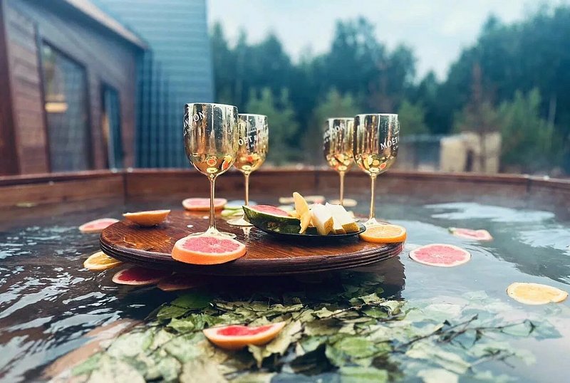 Банный чан, своя мангальная зона, и индивидуальная беседка входит в стоимость на весь период проживания. на территории глэмпинга большой бассейн с шезлонгами, также для сапы, лодки тоже входят в стоимость.