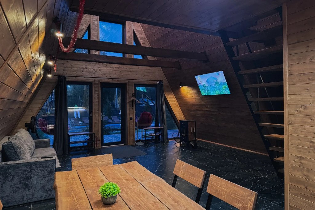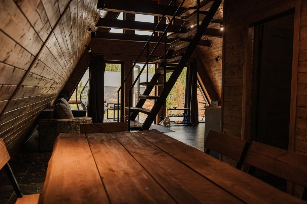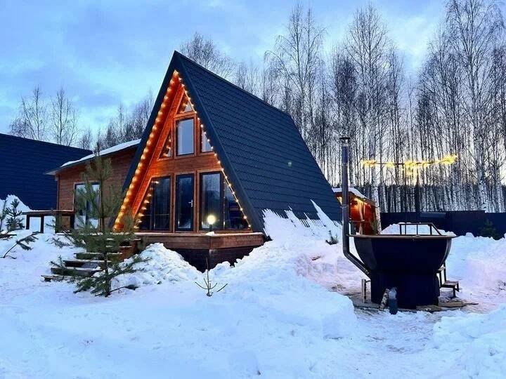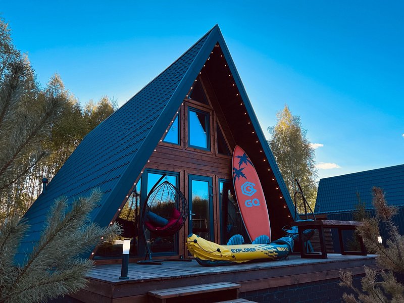 А-фрейм дом — это уютное жилье, расположенное в живописной природной локации в шаговой доступности от Горьковского моря.