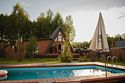 Тип бассейна: открытый бассейнРядом с бассейном: шезлонги, зонтикиБольшой загородный бассейн под открытым небом, окружённый зеленью и шезлонгами, с кристально чистой водой.