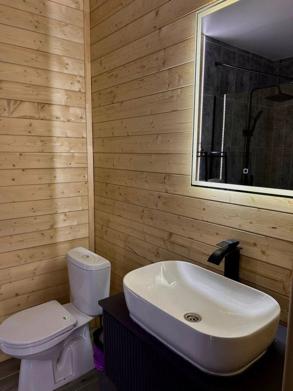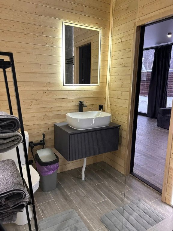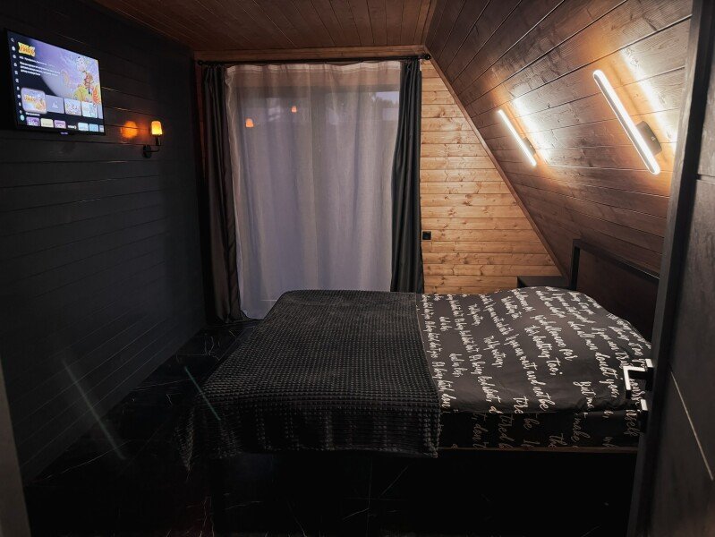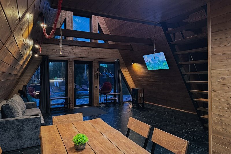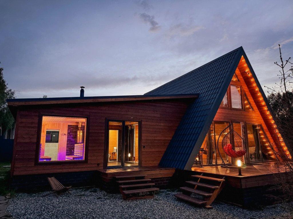 А-фрейм дом с баней — уютное жилье, расположенное в живописной природной локации в шаговой доступности от Горьковского моря.