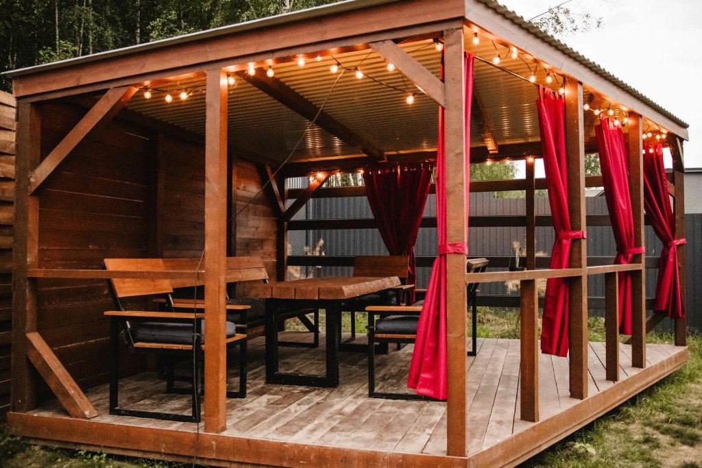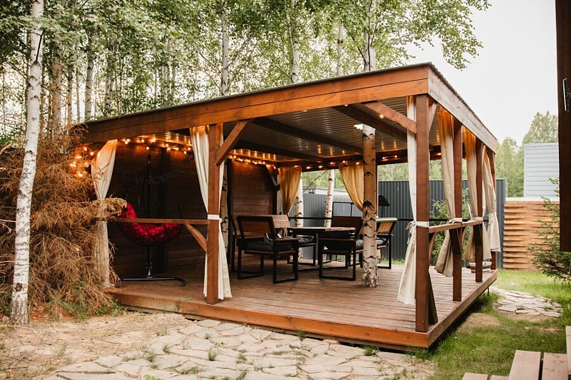 - просторная беседка со шторами;
