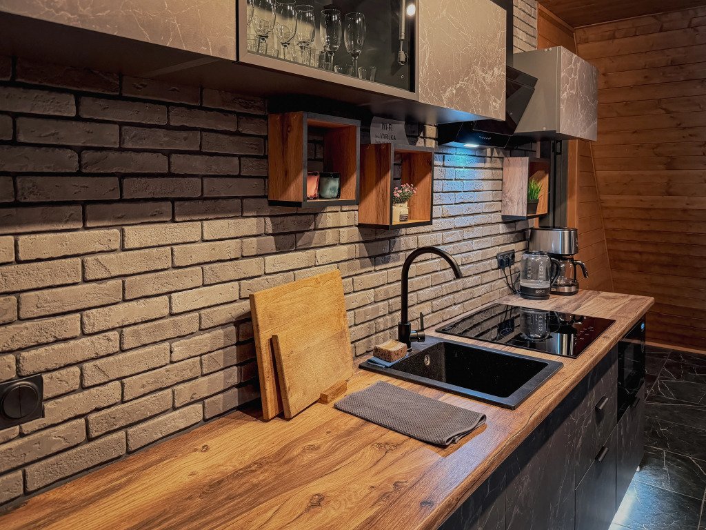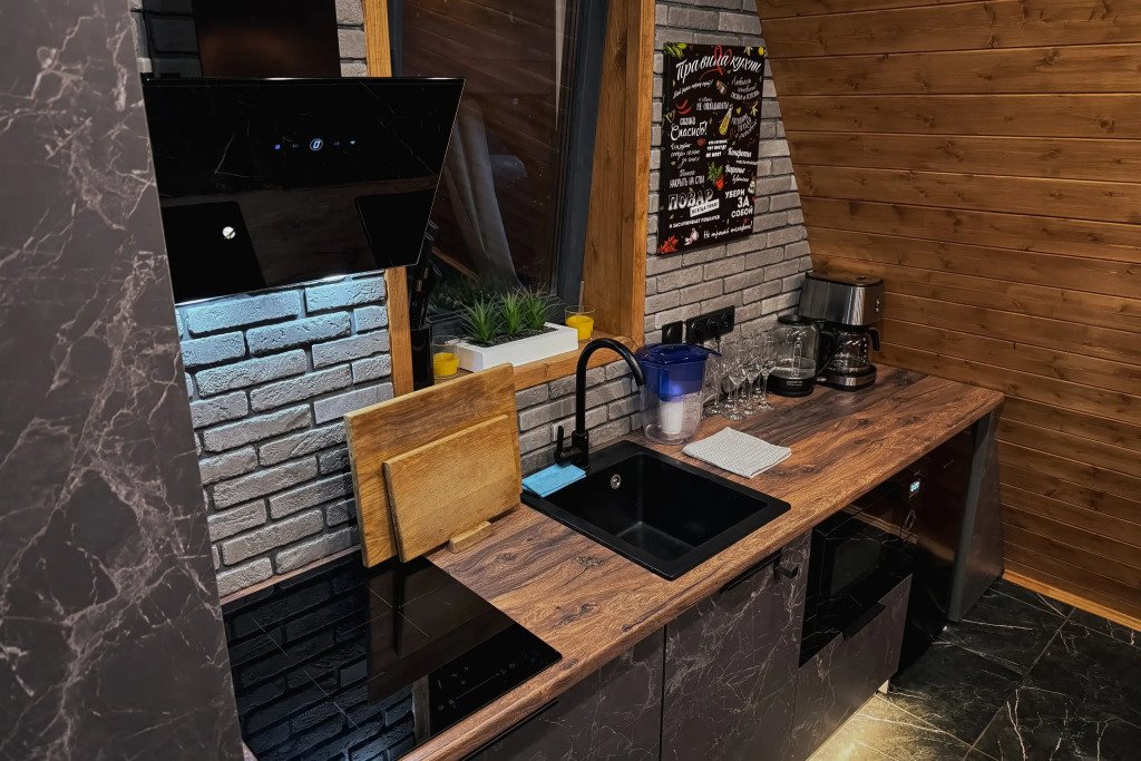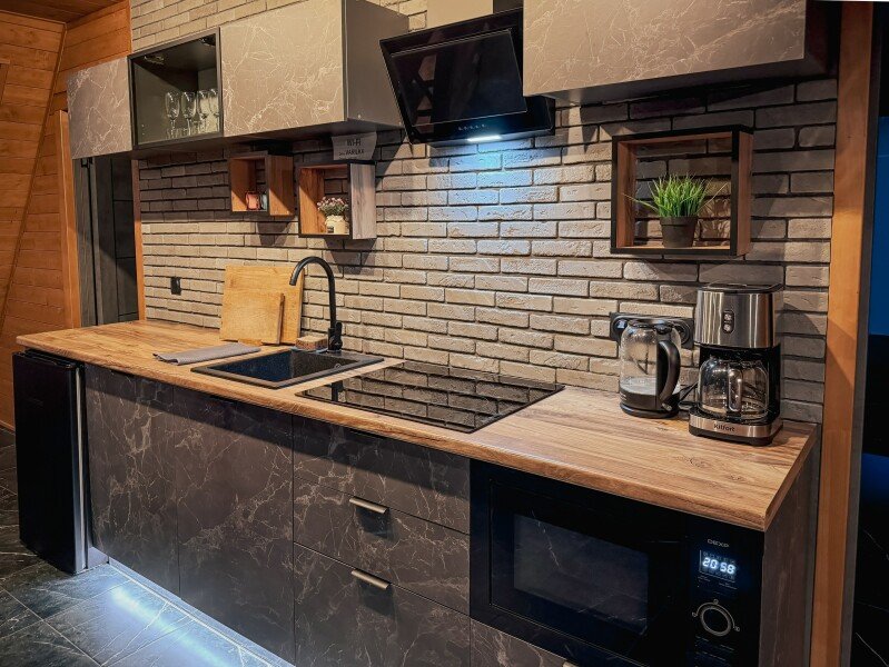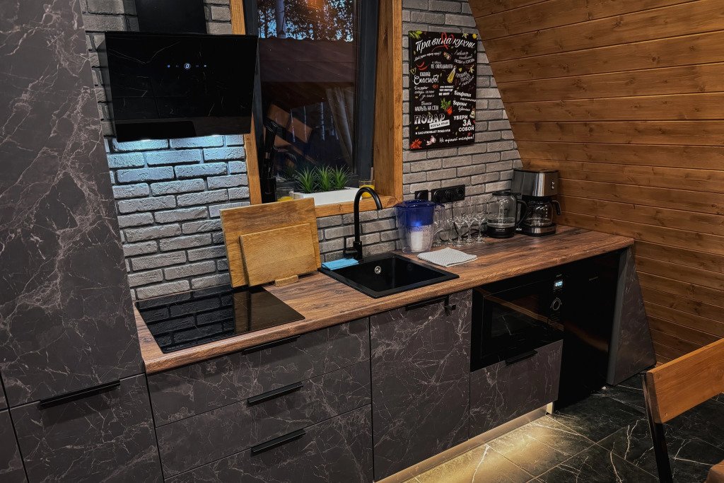 - современная бытовая техника: микроволновая печь, индукционная плита, электрочайник и кофемашина;
