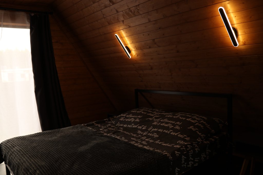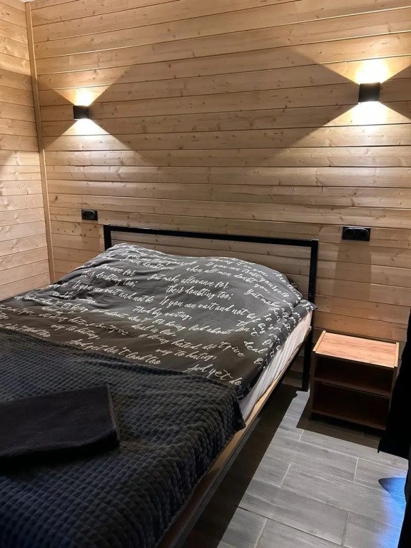 В доме: просторная кухня-гостиная, две спальни с двуспальными кроватями (одна на антресольном этаже), а также отопление с регулируемыми тёплыми полами на всей площади. Для вашего комфорта установлен плазменный телевизор с доступом к интернету через Smart TV и удобный диван-кровать.