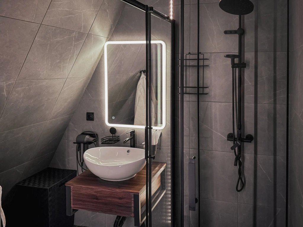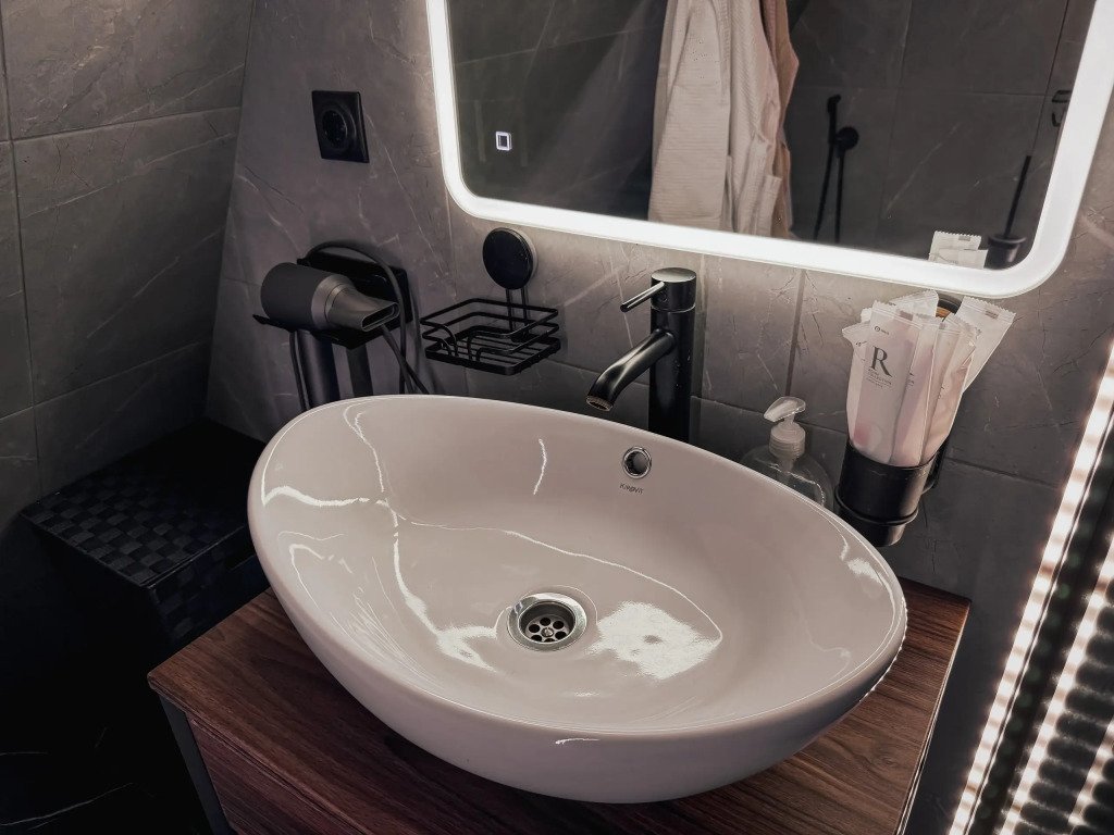 - ванная: дизайнерская сантехника с подсветкой со всеми принадлежностями, включая халаты, тапочки, полотенца и одноразовые средства гигиены;