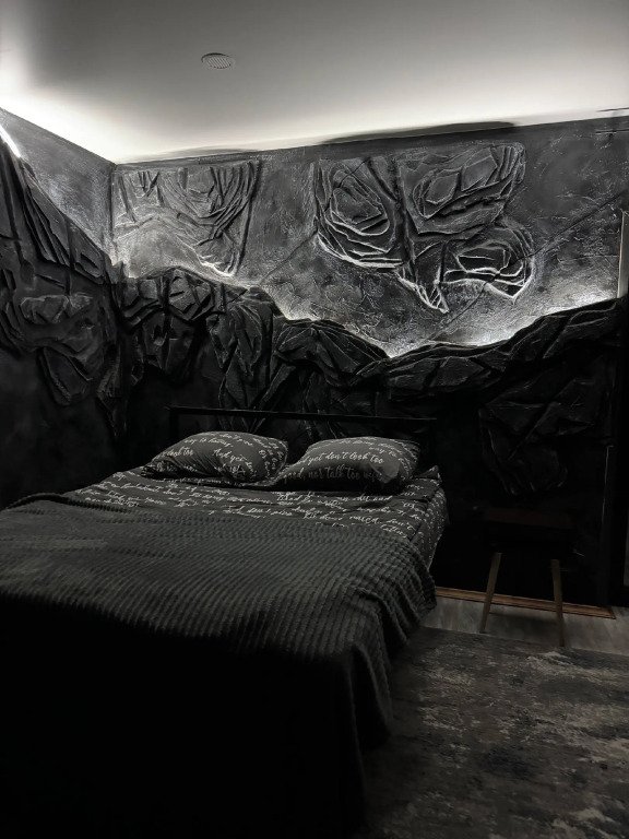 - гостиная: свободная комната с раскладным диваном, на стене расположен большой smart TV. Присутствуют дополнительные стулья;