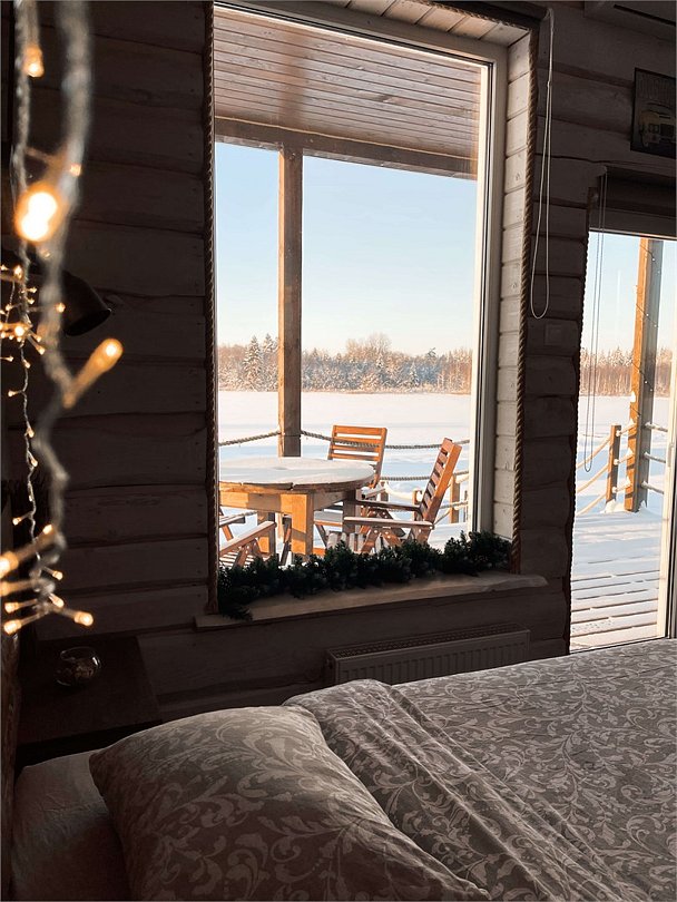 Премиальный дом BLUE с сауной — ваш островок комфорта в сердце леса! Две изолированные спальни с большими двуспальными кроватями и натуральным текстилем. Сауна, из которой открывается великолепный вид на озеро, с дровяной печью Harvia.