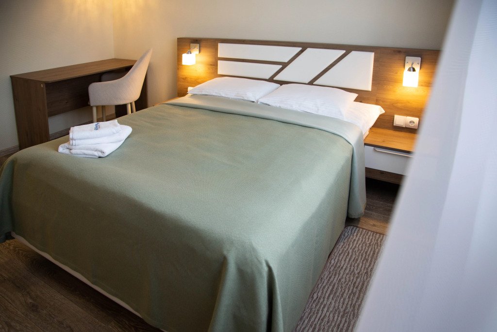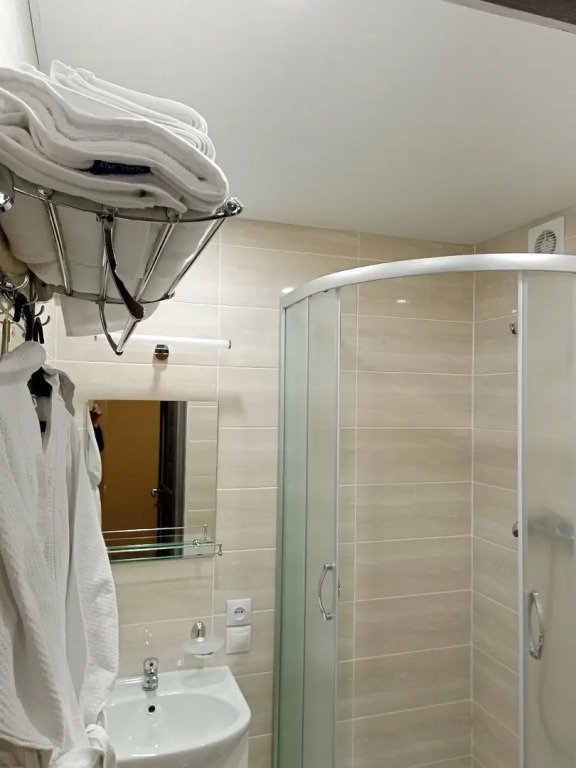 В номере вас будут ждать телевизор и халат. Оснащение зависит от выбранной категории номера.