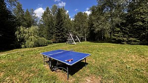 На территории «Балдейкино», занимающей 0,5 гектара, царит гармония с природой. Живописные лесные деревья и уютные зоны отдыха создают идеальные условия для расслабления. Для маленьких гостей предусмотрен домик на дереве, где они смогут окунуться в мир детских приключений. Кроме того, вас ждут разнообразные развлечения, такие как настольный теннис, а также живописные озера с пешеходными мостиками и большими качелями — прекрасное место для отдыха на природе.