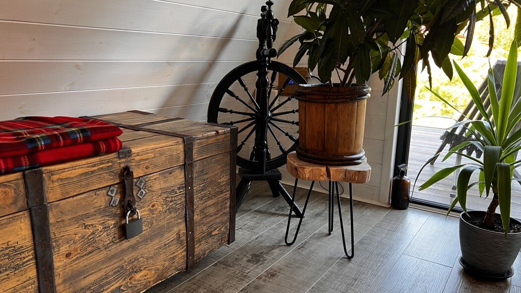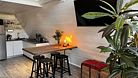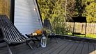 Лесной домик общей площадью 75 м² и просторная терраса 24 м² с зоной отдыха. На первом этаже — кухня-гостиная, оборудованная на все 100%: холодильник, микроволновка, посудомоечная машина, тостер, индукционная плита, пароварка, духовка, электрический чайник, а также огромное количество современной посуды. В дополнение к этому предоставлены чай, специи, соль, сахар, масло и уксус.