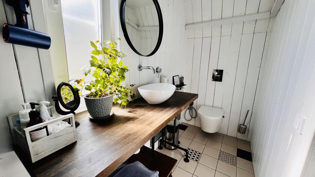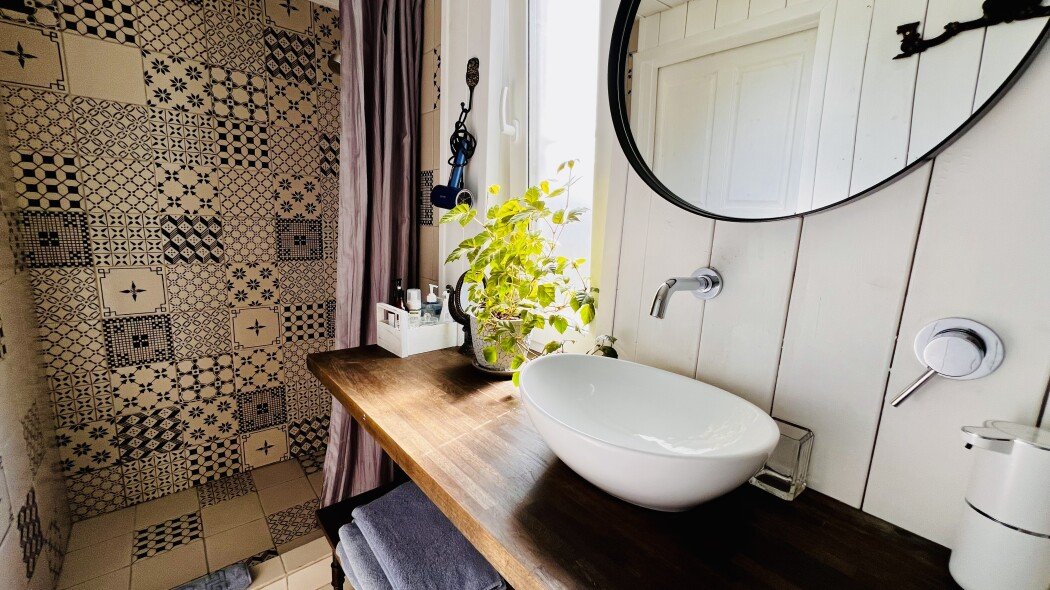 В ванной комнате есть душ, раковина, унитаз и стиральная машинка. Гостям предоставлены фен, шампунь, кондиционер, гель для душа, полотенца, ватные диски и палочки, средство для умывания, крем для рук и тела, а также гель для стирки и все моющие и чистящие средства. В доме предусмотрены утюг и гладильная доска.
