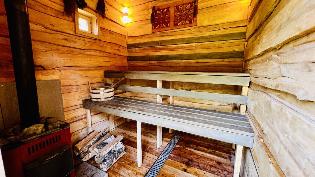 Каждому домику предоставляется собственная баня на дровах, доступная для гостей в любое время без ограничения по количеству топок. Это идеальное место для расслабления и восстановления сил, где можно насладиться атмосферой уюта и погрузиться в парные процедуры на свежем воздухе, добавляя нотку удовольствия в каждый момент отдыха.