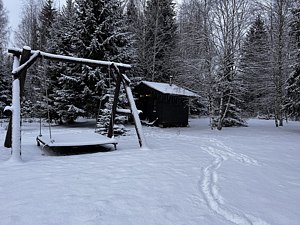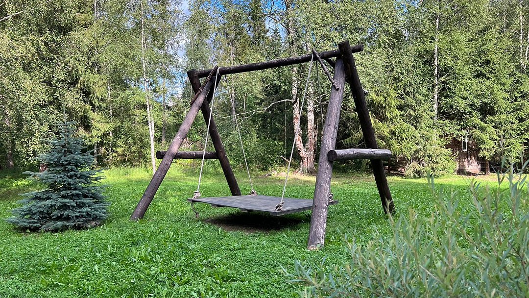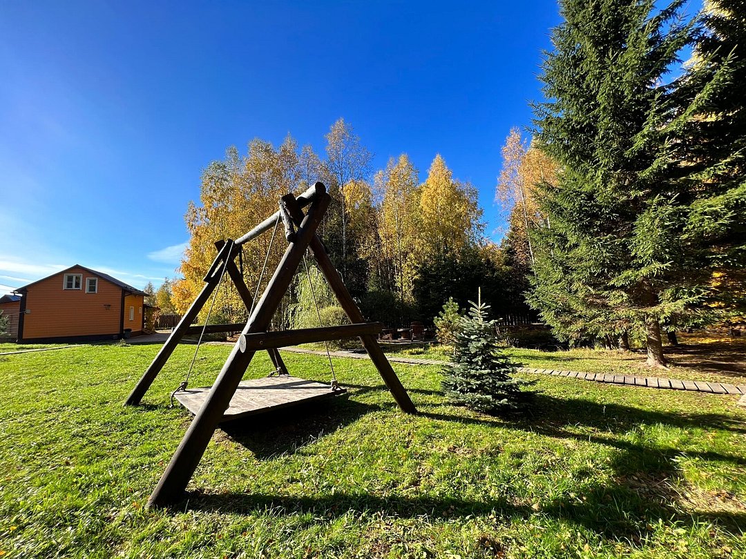 Кроме того, на территории есть баня для гостей дома «Лесной», настольный теннис, а также уютные зоны отдыха с уличными креслами. Особое внимание заслуживает костровая зона и живописные озера с пешеходными мостиками, а также большие качели, которые позволят всей компании собраться вместе и прекрасно провести время.