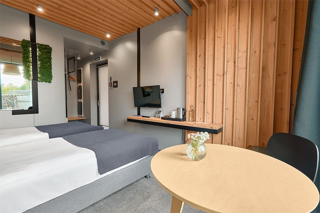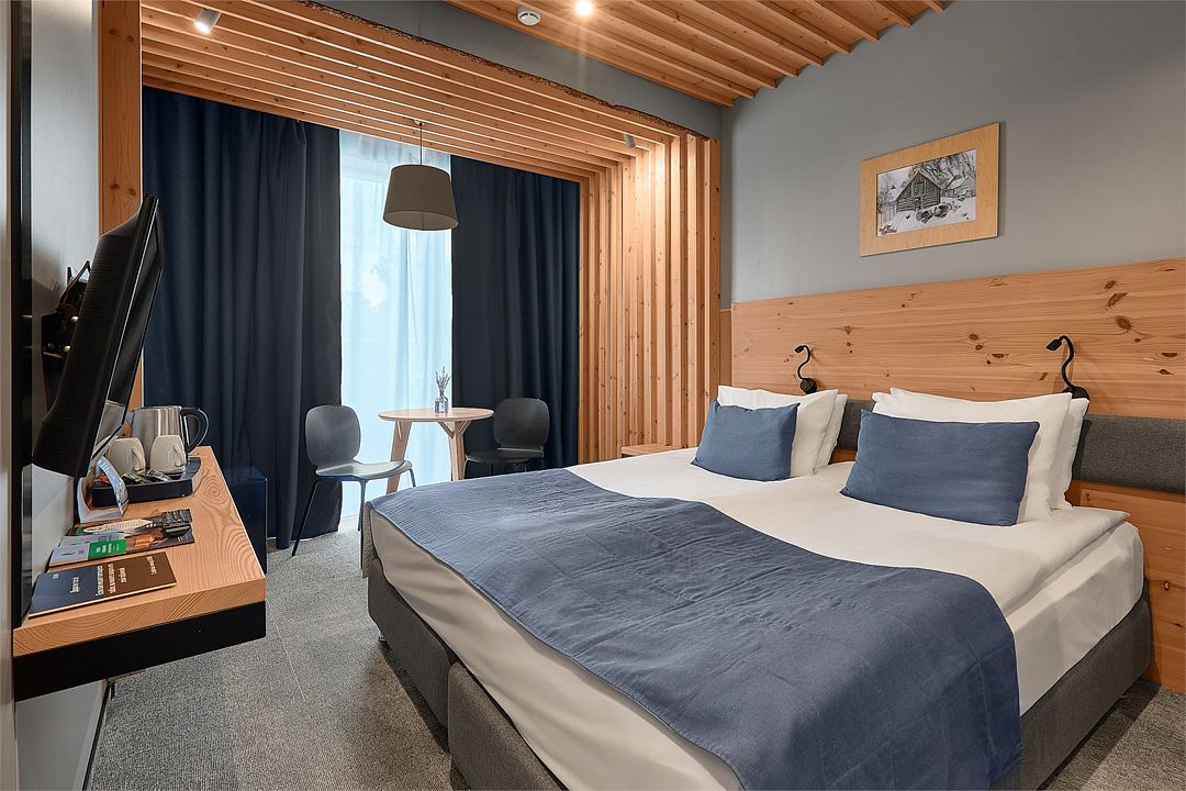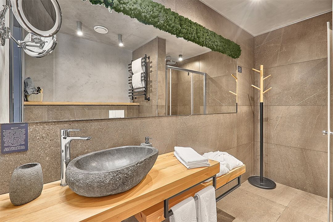 Путешествие по работе4 звезды, многовато.Была с мужем, он был по работе. Провели одну ночь в улучшенном номере в конце июля 2022г. Отель внешне симпатичный, приятная территория, ухоженная но не большая. Симпатичные постройки скандинавского стиля с деревянной палубой, камнями в виде декораций и симпатичными декоративными растениями. Первое впечатление приятное, радует глаз. При входе в корпус, где находится администратор и стандартные номера, на третьем этаже кафе-столовая, сильно пахнет туалетом. Очень порадовалась, что мы не заселились в стандарт номер. Номер в целом понравился, все достаточно комфортно и чисто, за исключением полотенец среднего размера. Они были не белого, а серого цвета. В 4звездном отеле мне кажется это совсем не годится. Есть выход на маленький мини дворик из номера, если у вас 1й этаж (этажа два) . Это очень мило и приятно. Завтрак входит в стоимость. сама Стоимость я хочу сказать европейская, почти 150 евро по нынешнему курсу. Очень было не приятно когда я пошла на обед, персонал из ближнего зарубежья общался в присутствии клиента исключительно на своем языке, что было не приятно. Я бы это поняла, если бы я поехала в другую страну. Обед достаточно приличный и вкусный за доп. плату в 500 руб . На завтраке, который по будням до 10:00, как по секундомеру повар стал все убирать и уносить на глазах. Немного хотелось бы уважения и в присутствии клиентов этого делать не стоит. Подождите какие то 10-15 минут, пока уйдет клиент, даже если он один. Например налить кофе и взять к кофе блинчик, пришлось практически остановить повара. :-)) Информацию на рецепции приняли к сведению, надеюсь это будет исправлено. Тот кто хочет оторваться от городской суеты, место подходит, приятное, но делать там особо нечего. Отель больше подходит для бизнес посещений, тем более с такими ценами. В целом благодарю, что у нас появляются такие симпатичные местечки!