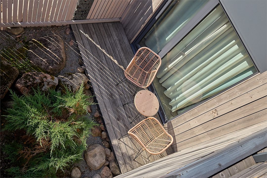 Просторный номер с собственной террасой, стильный дизайн и высокая функциональность для комфортного отдыха. Расположение: второй этаж второго корпуса.