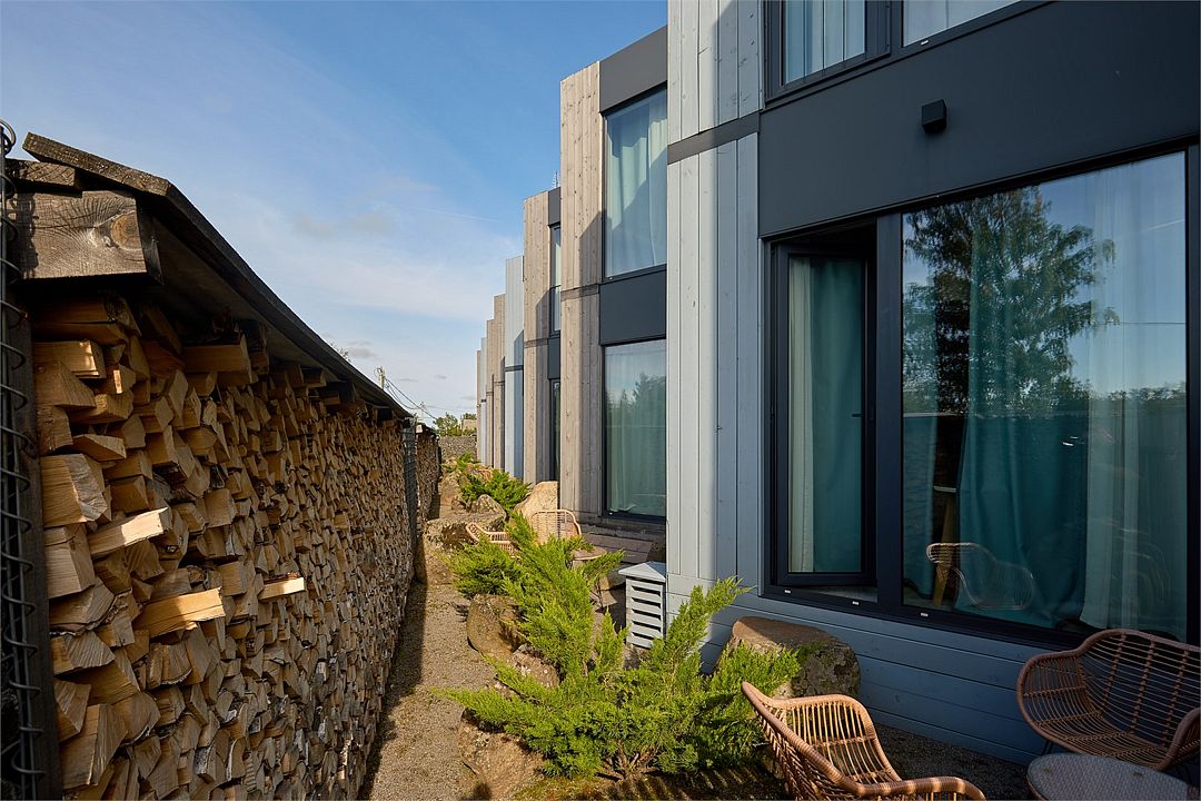 Путешествие с паройСтандарт гостеприимстваОтель нашли случайно, выбирали на букинге интересное место отметить мой день рождения, но так как я традиционно начинаю поиски в лучшем случае за день - выбор был небогат. И вот, повезло наткнуться на свободный полулюкс в Дубках. Приятные впечатления с первых минут взаимодействия с отелем - девушка по телефону терпеливо ответила на все мои вопросы о локации, питании, рыбалке и большом летнем ужине, который позиционируется как главная фишка отеля (и не зря!) и забронировала нам номер на 2 суток. Дорога от СПб занимает около 2 часов, найти несложно, отель прямо рядом с дорогой и посреди деревни выглядит островком европейской элегантности: стильные дома с панорамными окнами, сдержанной подсветкой в вечернее время и удобной парковкой. В отеле 3 корпуса, по словам хозяев, отделка в них немного отличается, но вся выдержана в скандинавском стиле: дерево, штукатурка под бетон, зелёный мох. Номера небольшие, но удачно зонированные. Тёплые полы, отличный текстиль, кондиционеры и вентиляция. Видно, что отделкой номеров и ландшафтным дизайном занимались профессионально, но при этом с большой любовью и вкусом. На территории есть лобное место с костром по вечерам, гамаки и баня, а в дождливую погоду можно поиграть в настольные игры или приставку в лаунж зоне.