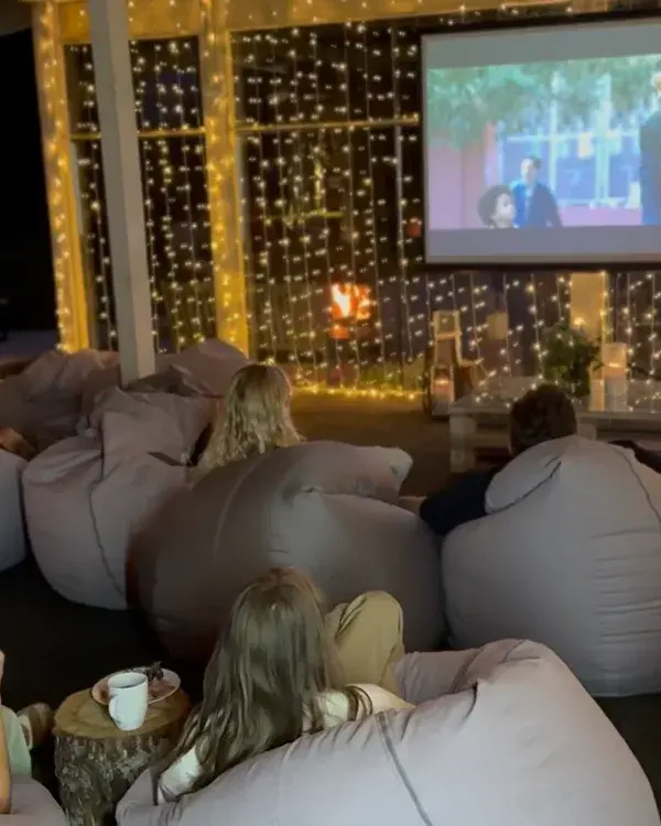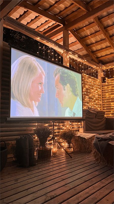 В атмосферной беседке проходят кинопоказы и уютные чаепития, создавая идеальное убежище от ненастья. Здесь каждый гость может погрузиться в мир фильма или просто согреться у камина, наслаждаясь особой атмосферой и приятным настроением.