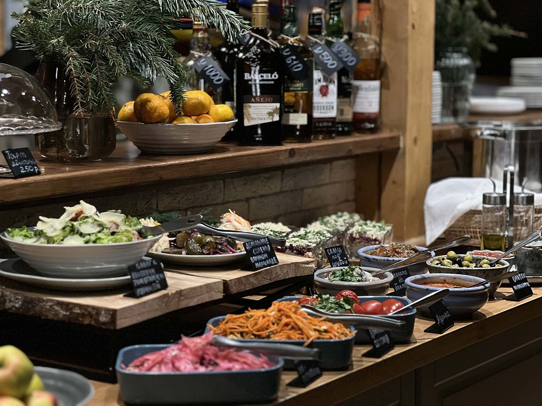 Со среды по субботу, с 17:00, в приятной и атмосферной обстановке будет организован фуршет. На столе будут представлены разнообразные сыры и домашняя выпечка, свежие фрукты, орехи и мясные деликатесы. Для завершения трапезы будут предложены чай из самовара и напитки из винного погреба.
