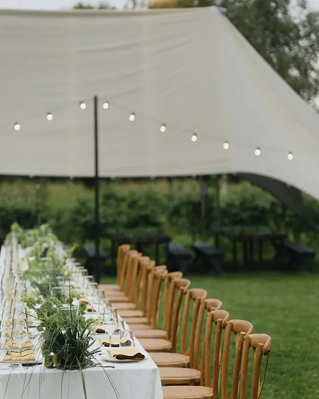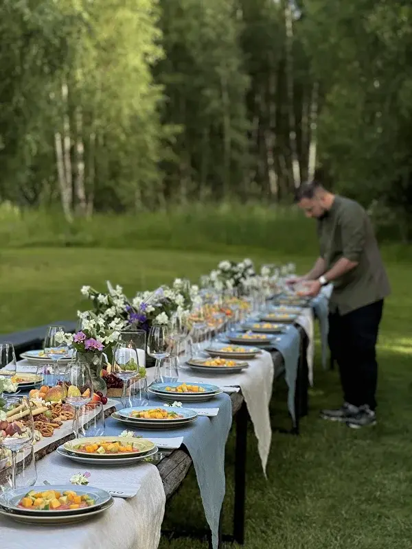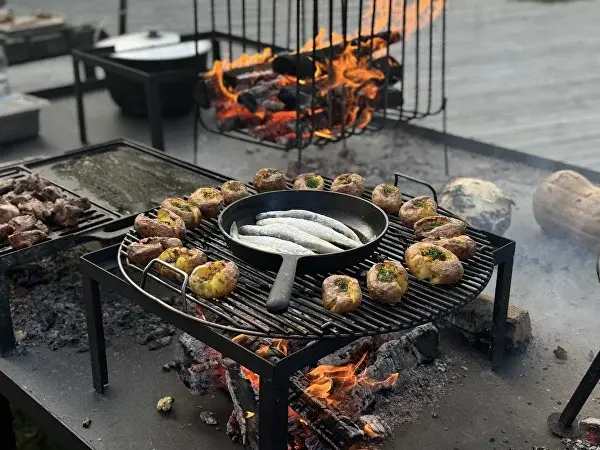 Под небом, окрашенным в теплые оттенки заката, гостей ждут аппетитные блюда, приготовленные на гриле, изысканные напитки и уютные разговоры у костра, создавая атмосферу тепла и дружелюбия.